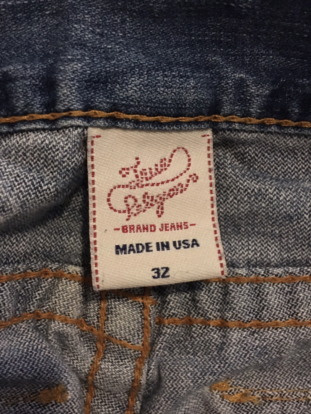 Selling a pair of True Religion jeans! These are the Billy Big T style in a size 32. They are in good condition and have the classic True Religion horseshoe detailing on the back pockets. The seat size is 34.
