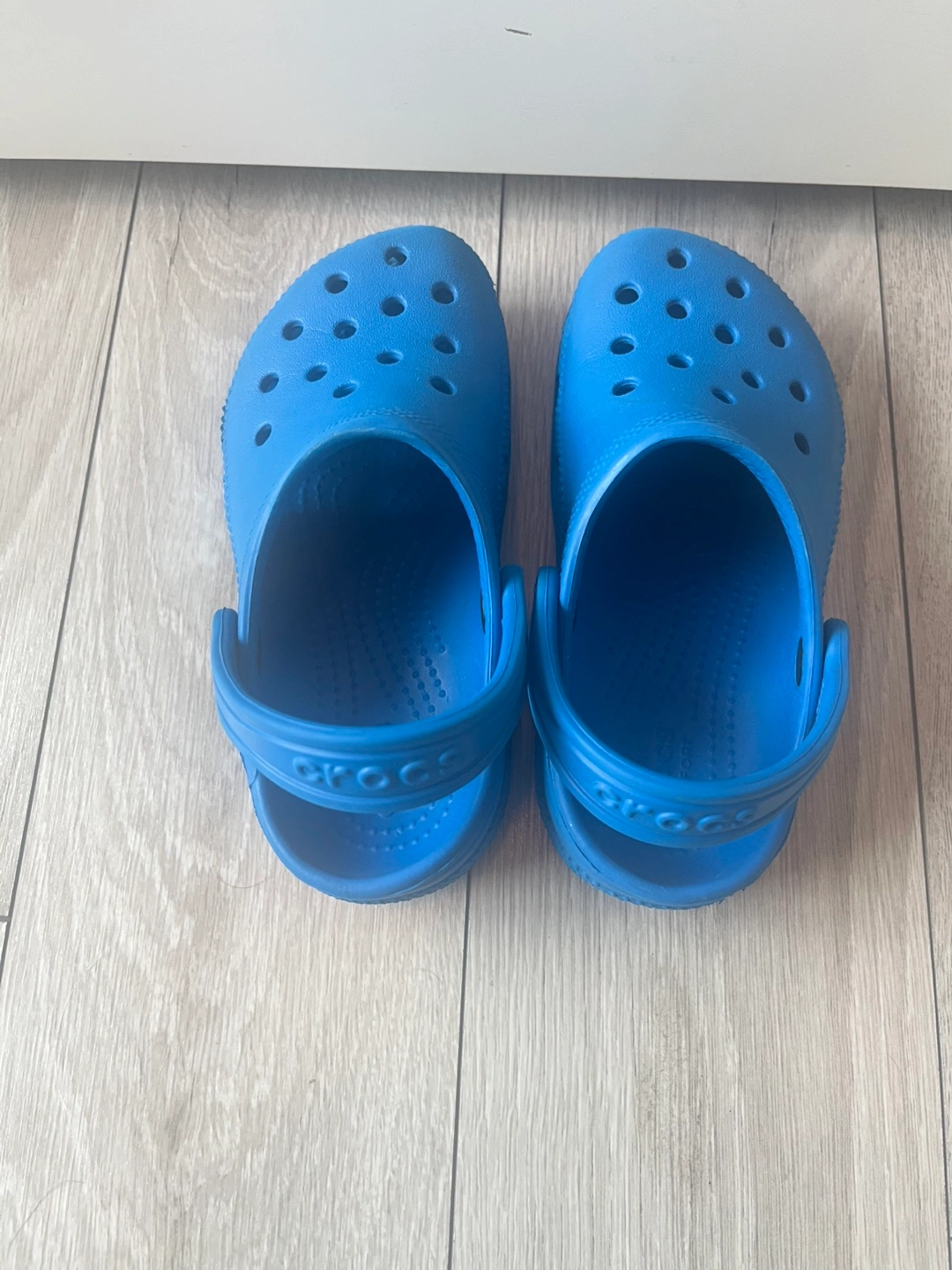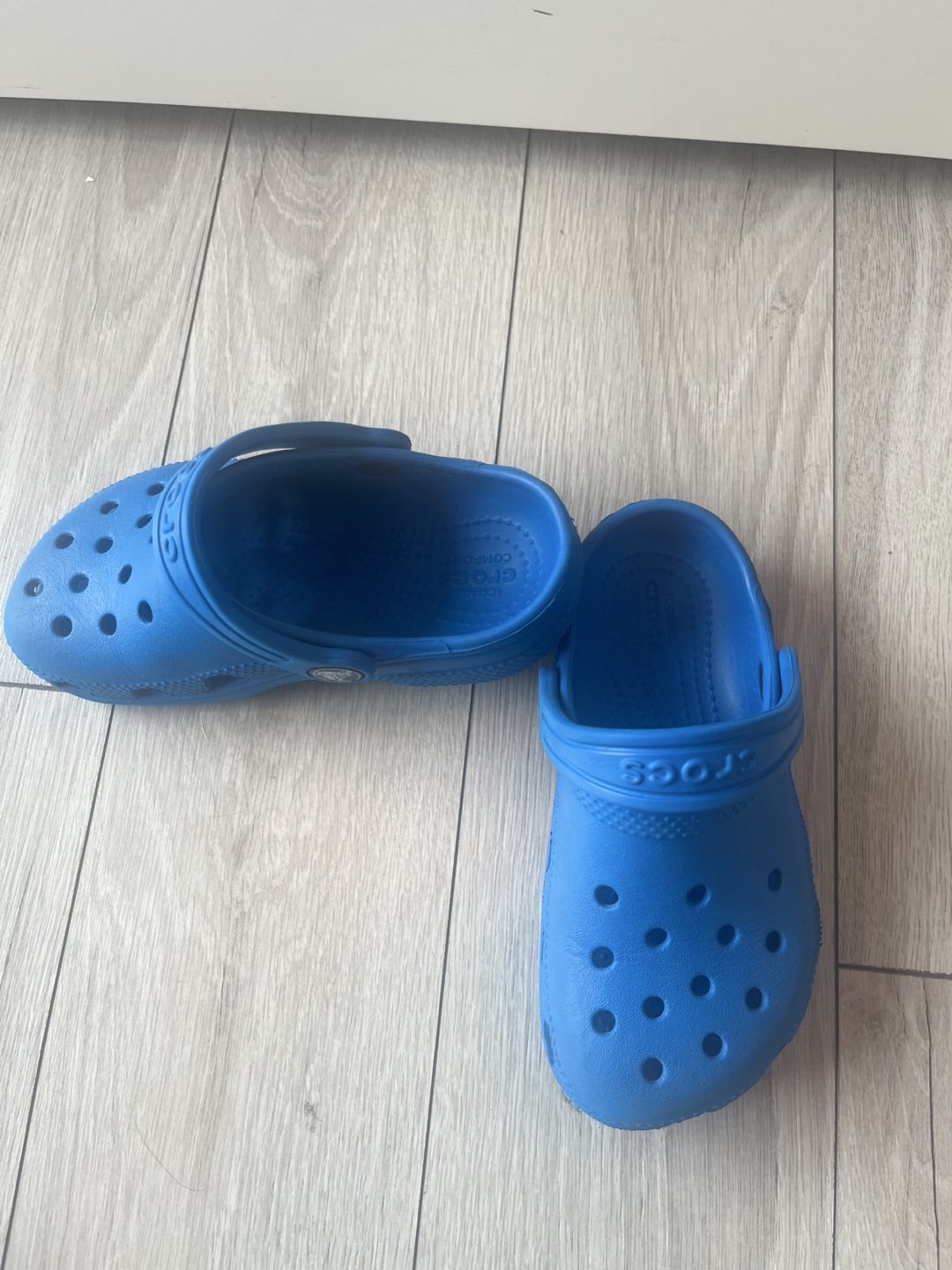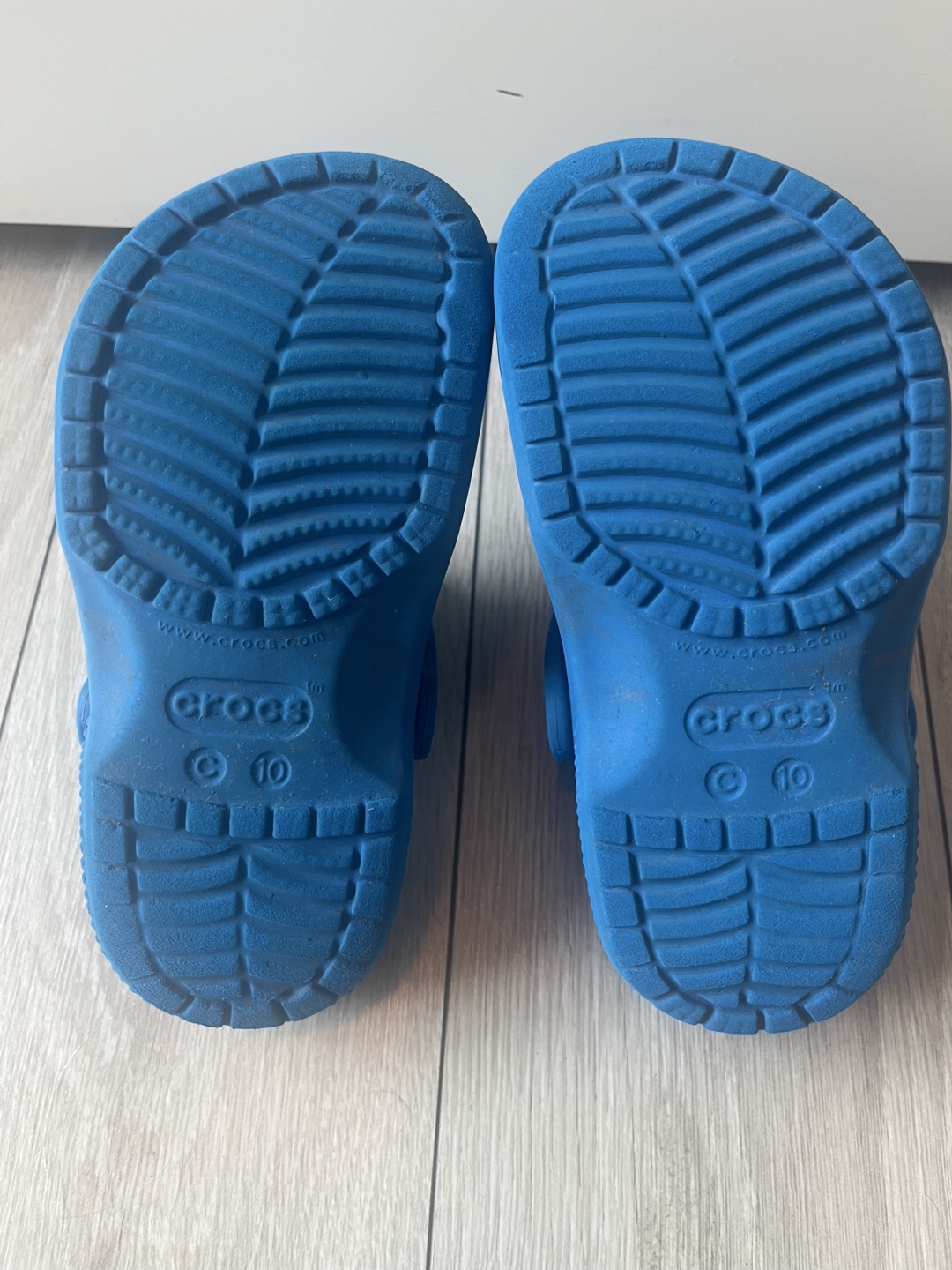 Selling a pair of kids blue Crocs Classic clogs in size 10. They're in good condition and ready for a new home!