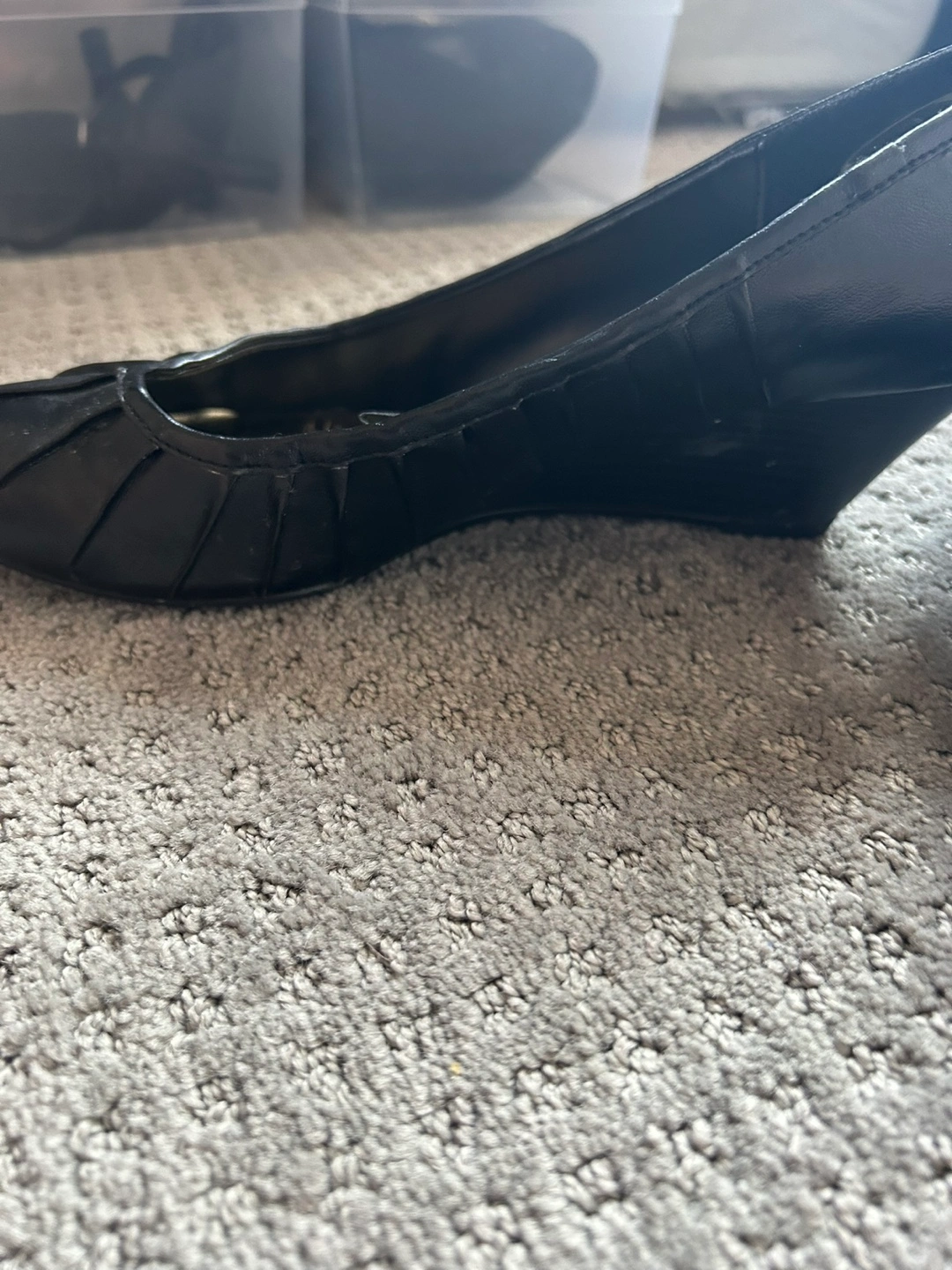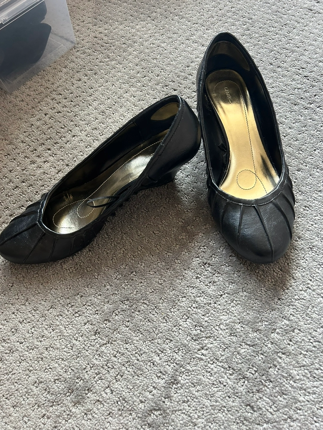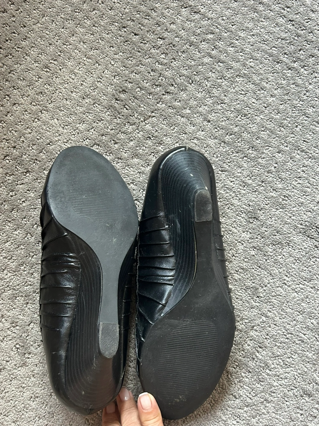 Selling a pair of Clarks wedge heel shoes in black. They are in good condition and ready for a new home!