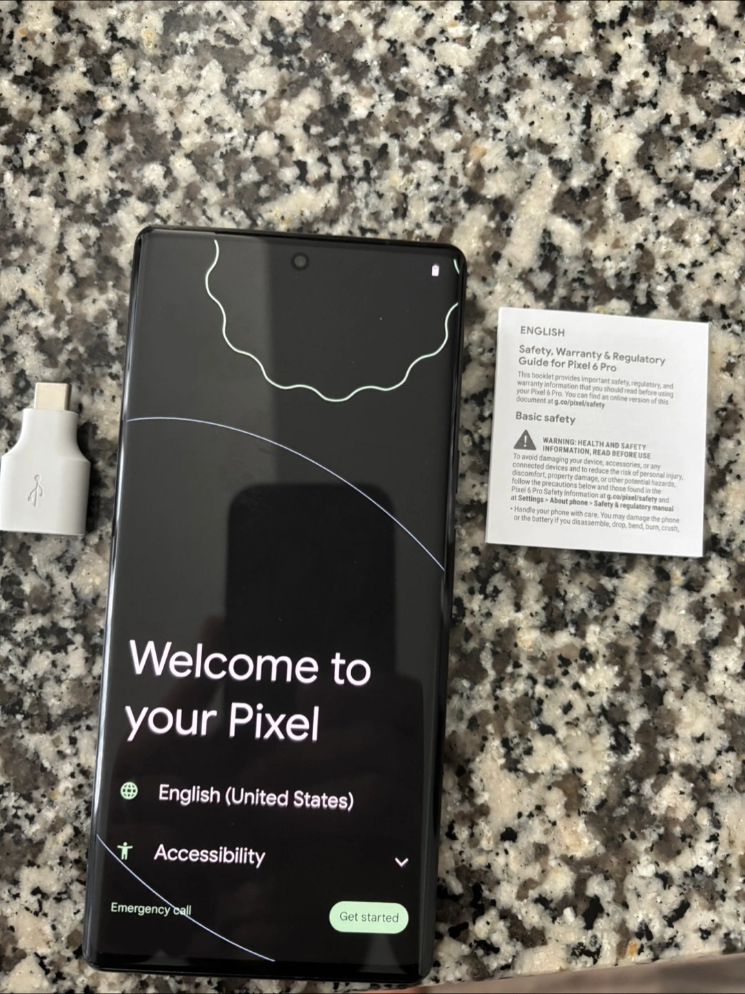 Selling a Google Pixel 6 Pro in black. It comes with the safety, warranty, and regulatory guide. Also included is a USB adapter with 128 GB