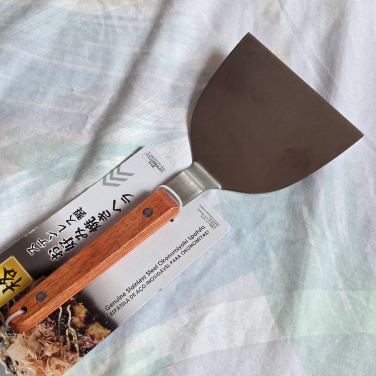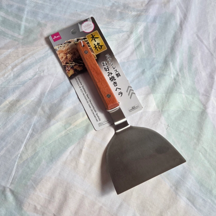 Selling a stainless steel Okonomiyaki spatula that has a handle made of wood