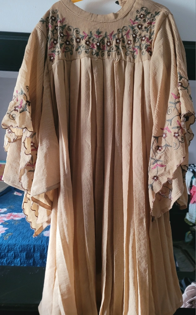 A lovely dress with beautiful embroidery detailing! It's a size L and features a flowy, comfortable fit. Perfect for adding a touch of elegance to your wardrobe
