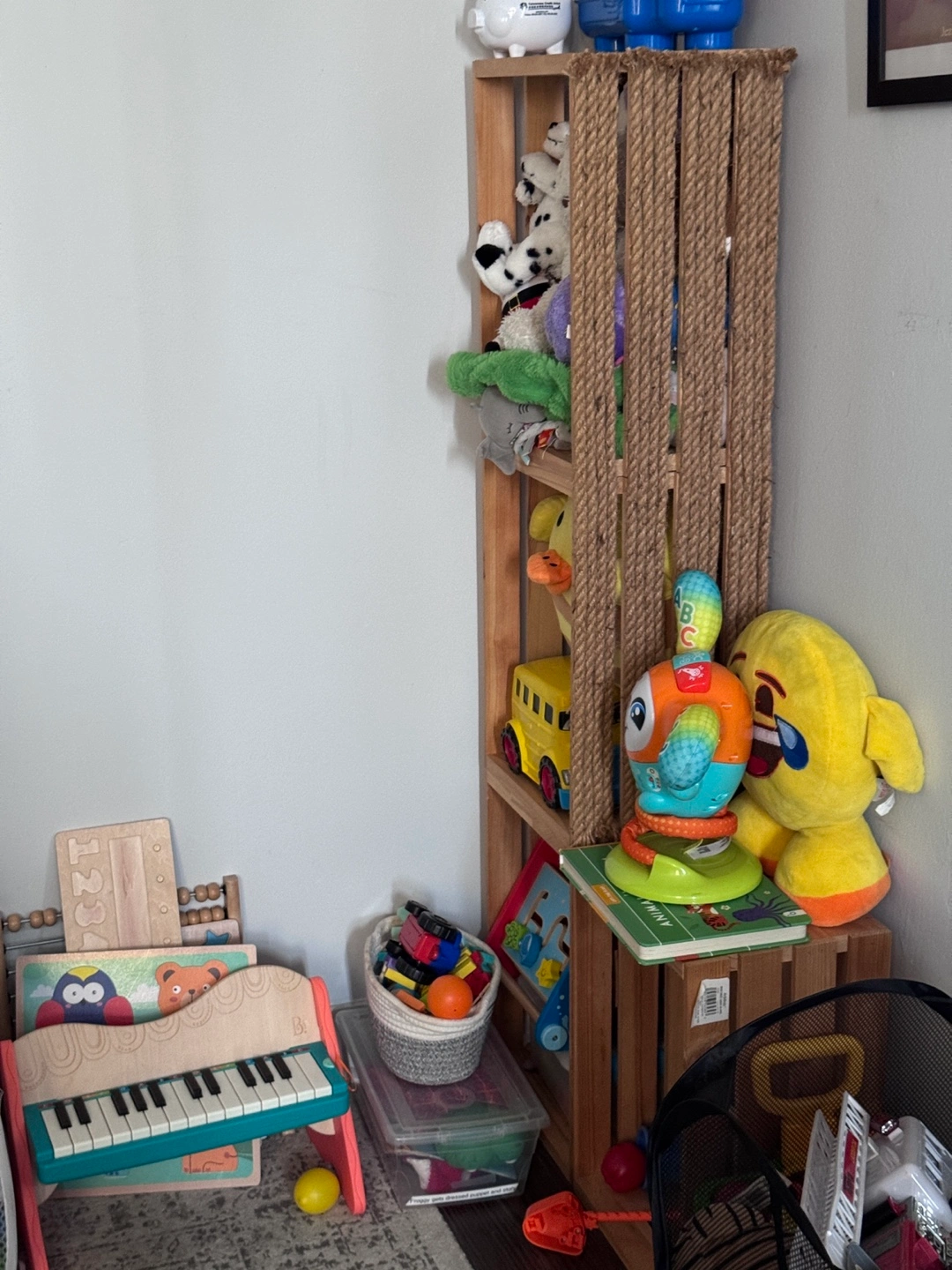 628Selling a wooden crate shelving unit! It's in good condition and perfect for adding a rustic touch to any room. Great for displaying plants, books, or other decorative items. It's a unique piece that will add character to your home