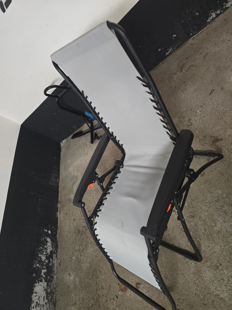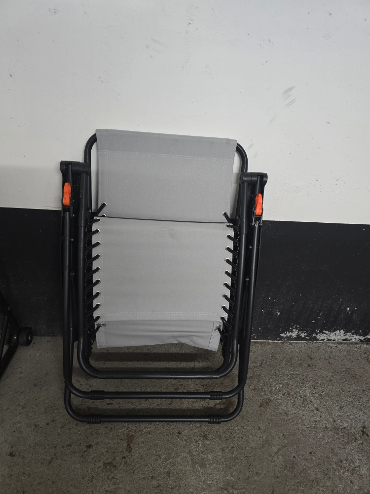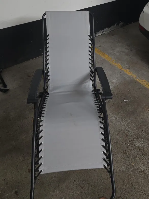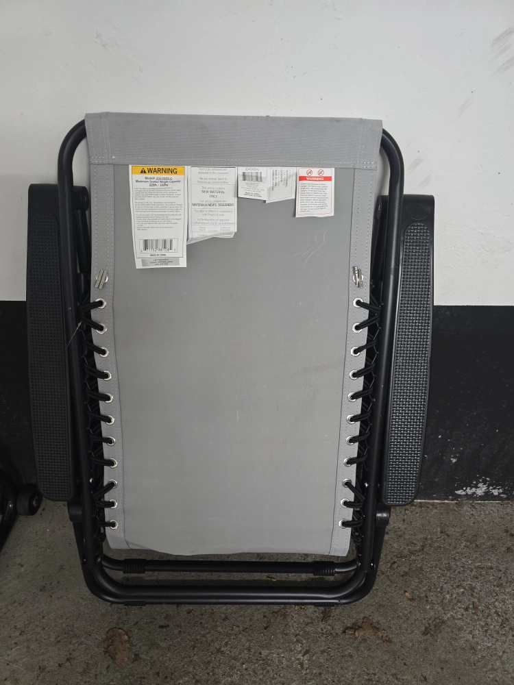 Relax in comfort with this zero gravity lounge chair! It's a great addition to any patio or outdoor space. The chair is grey and features a black frame. It's designed to provide maximum comfort and support while you relax outdoors