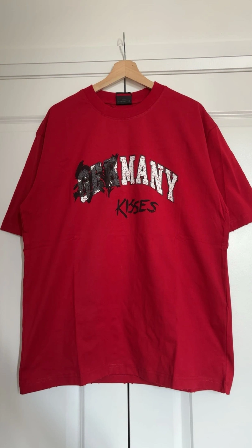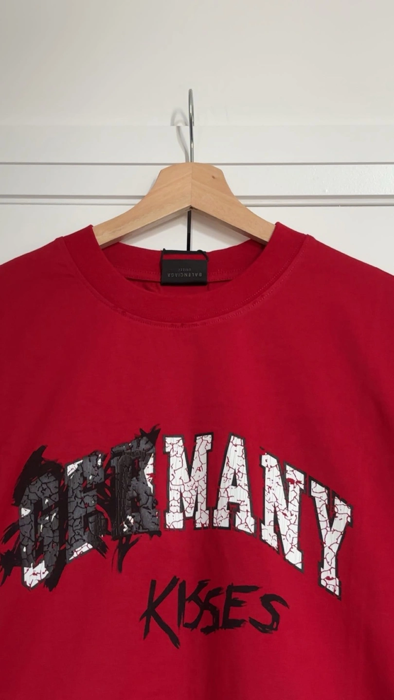 Selling a Balenciaga T-shirt in red with the 'Germany Kisses' design. It's in great condition and ready for a new home!