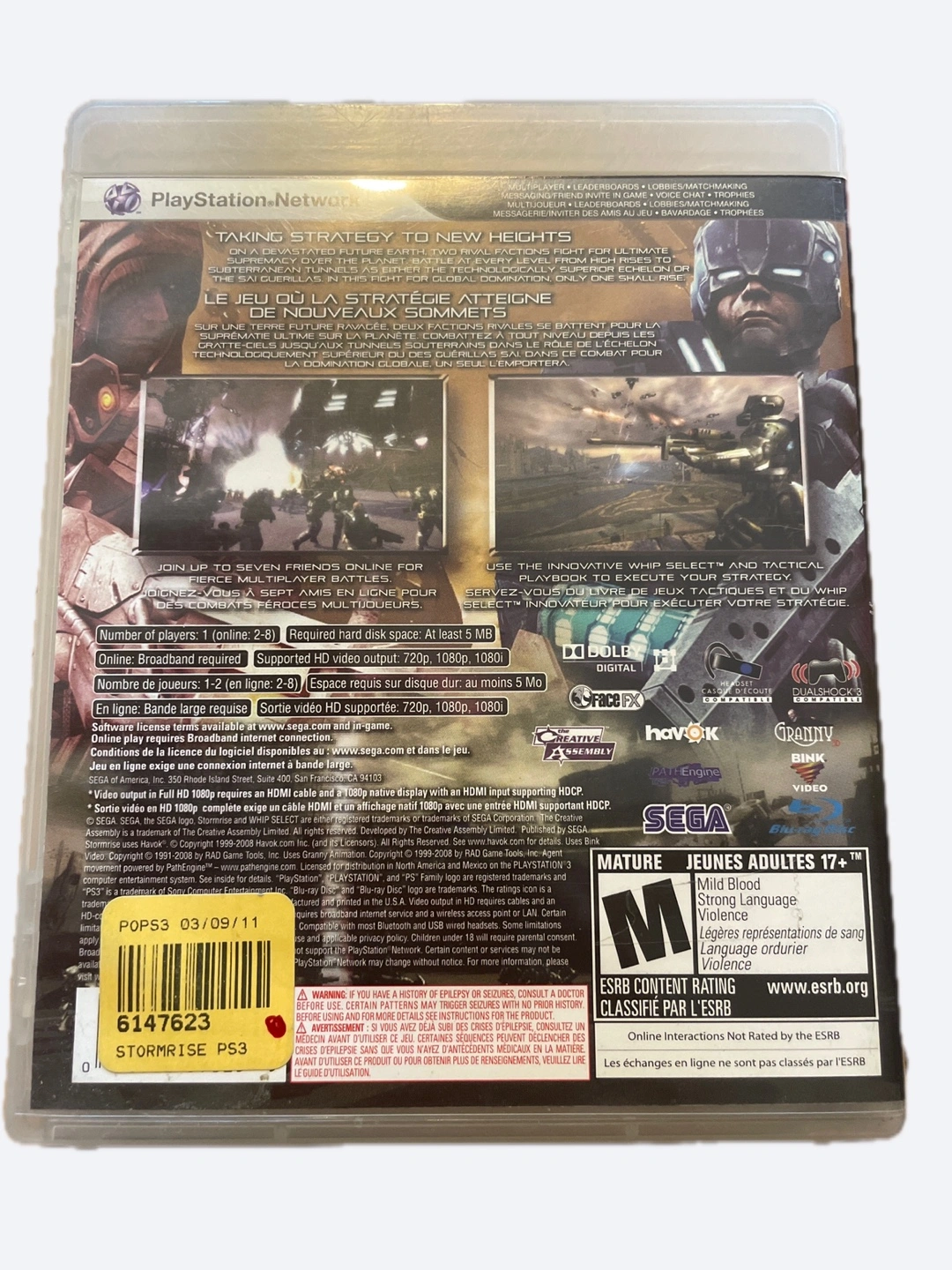 Selling the Stormrise game for PlayStation 3! It's a strategy game with a unique interface. Rated Mature 17+ for mild blood and violence. Enjoy taking strategy to new heights!