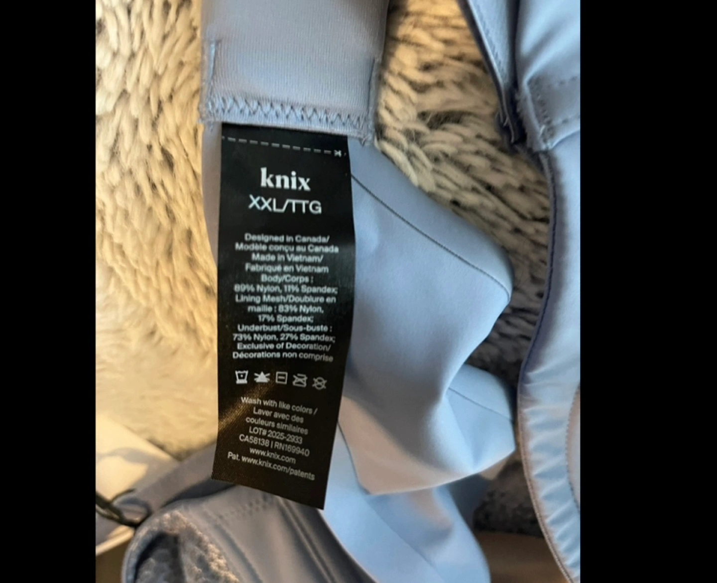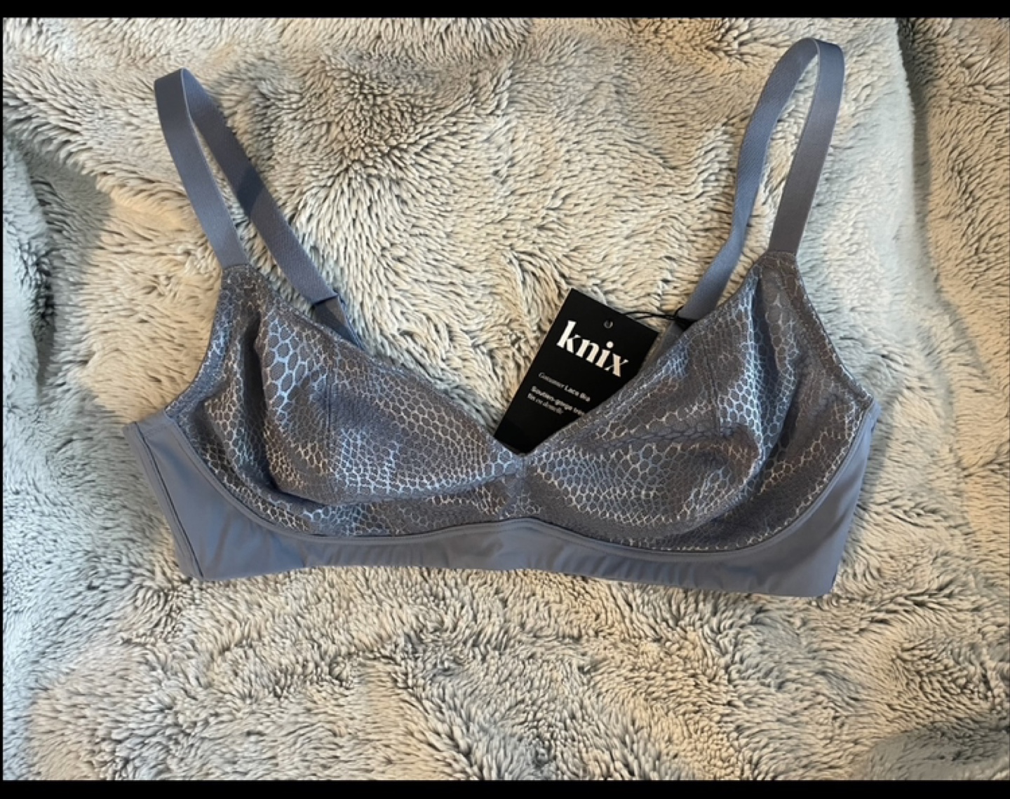 Selling a Knix Gossamer Lace Bra in size XXL. It's a beautiful light blue colour and made with 89% nylon and 11% spandex for a comfortable fit. The lining mesh is 83% nylon and 17% spandex. Underbust is 73% nylon and 27% spandex. Perfect for everyday wear!