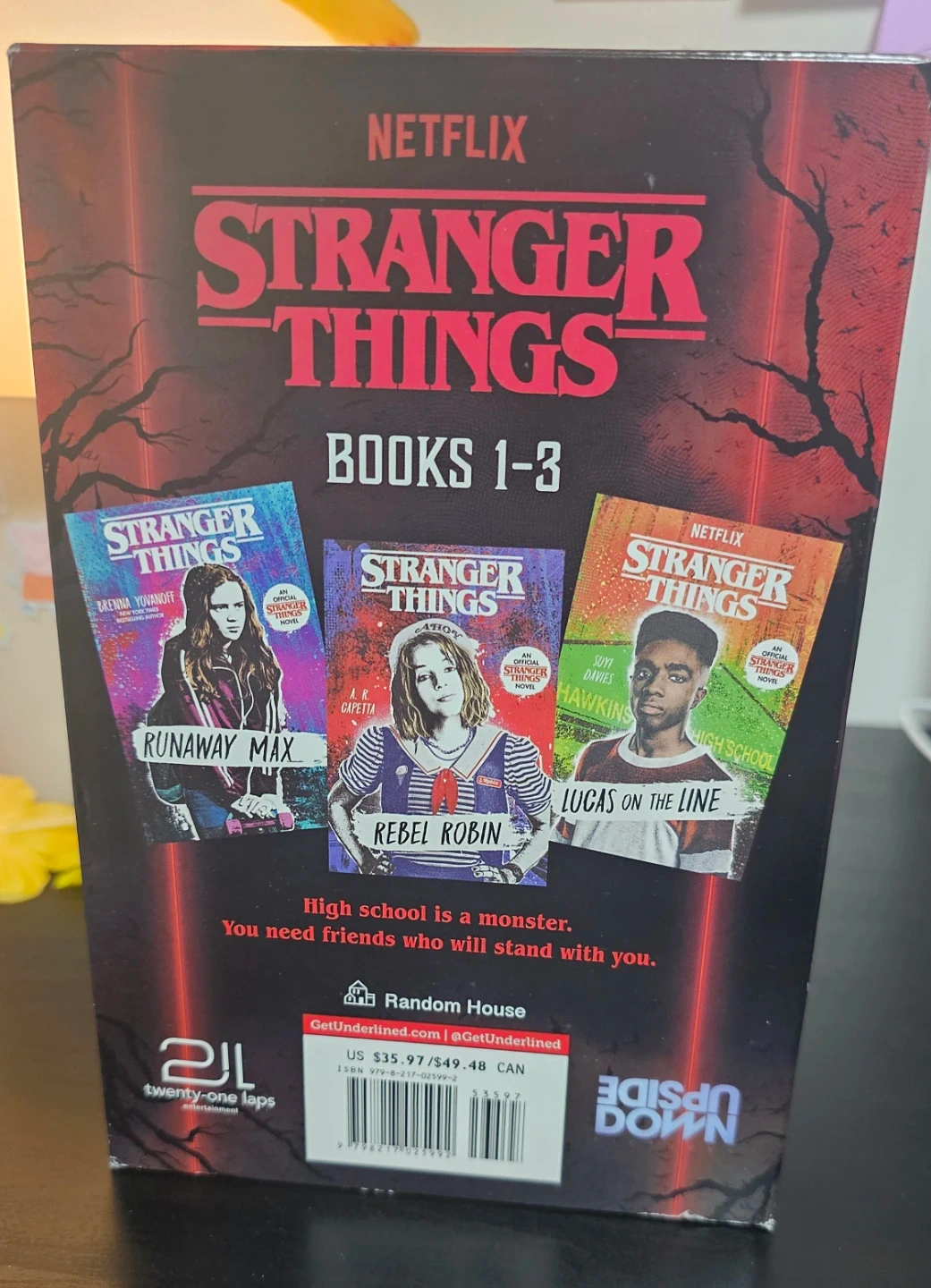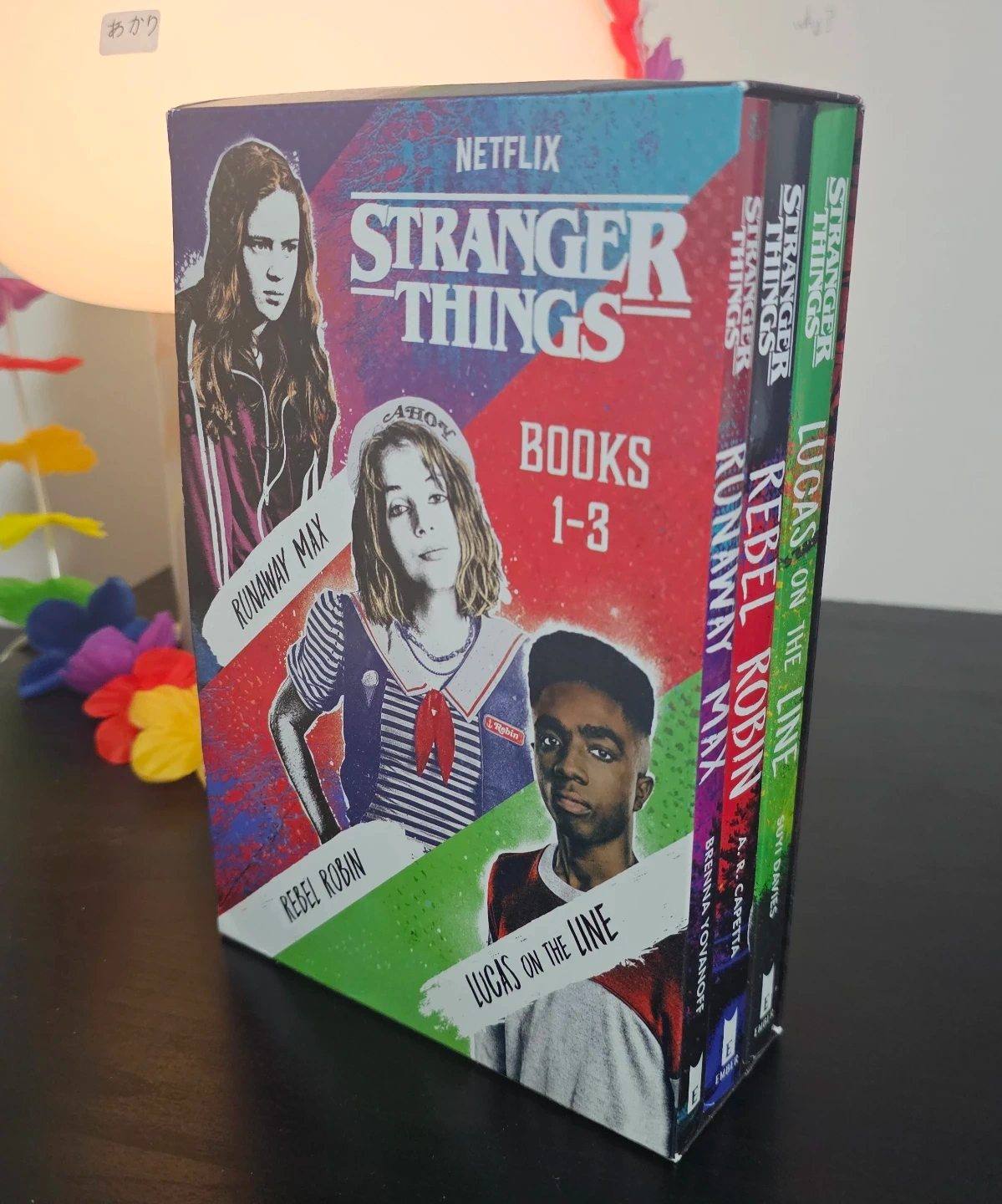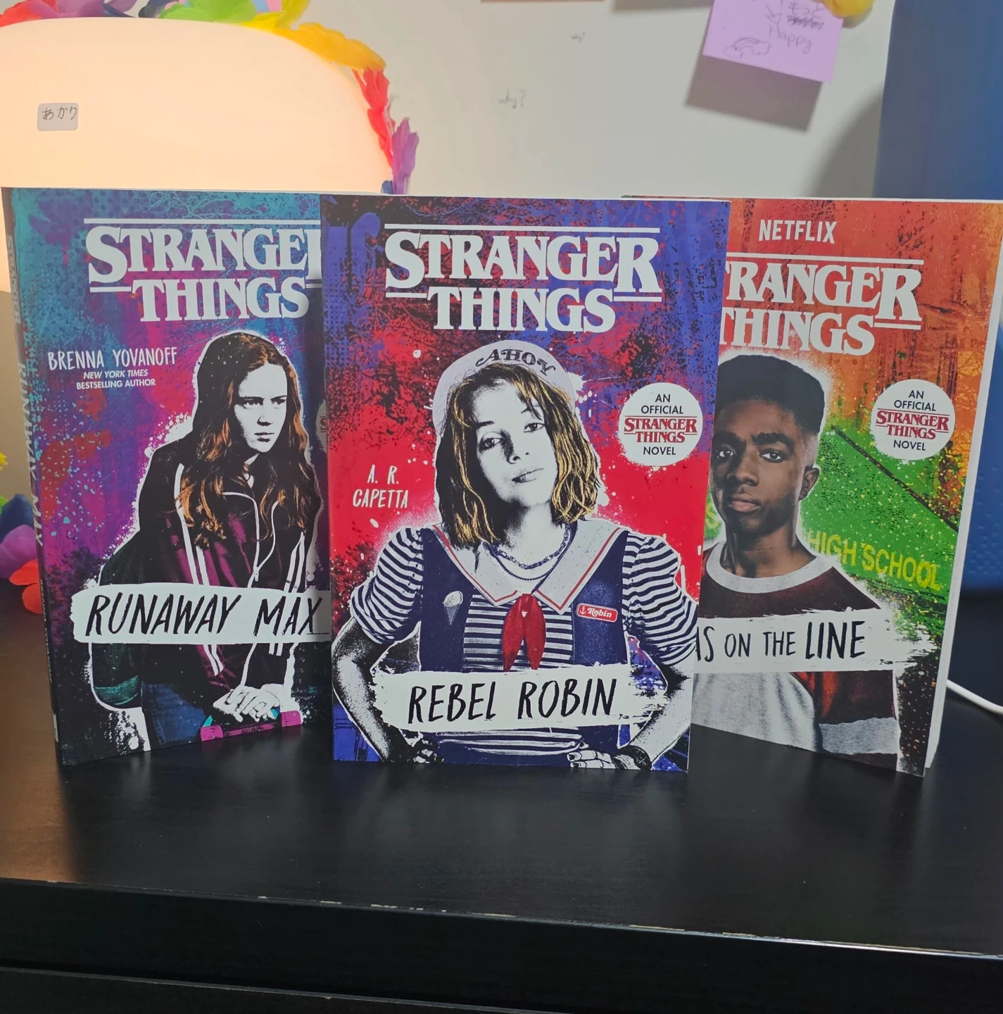 This is a set of three official Stranger Things novels. Includes 'Runaway Max', 'Rebel Robin', and 'Lucas on the Line'
