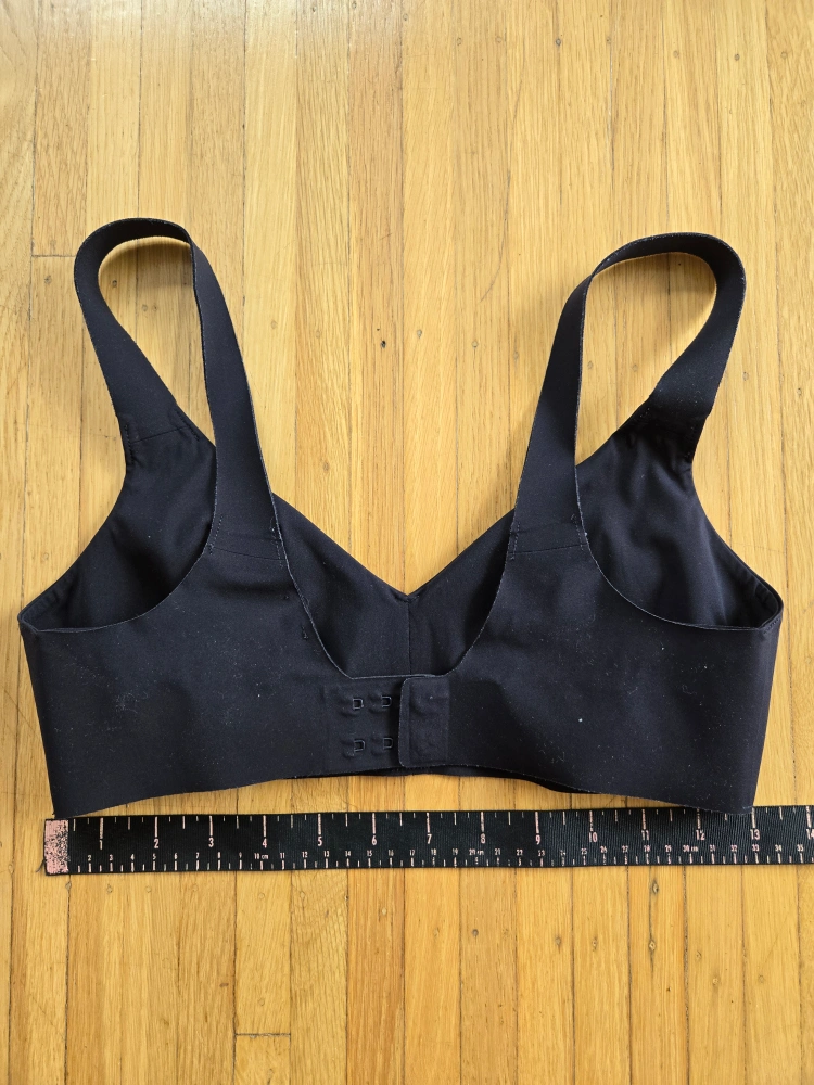 Flat closure: Stitch-free hook-and-eye closure lies flat for a distraction-free fit