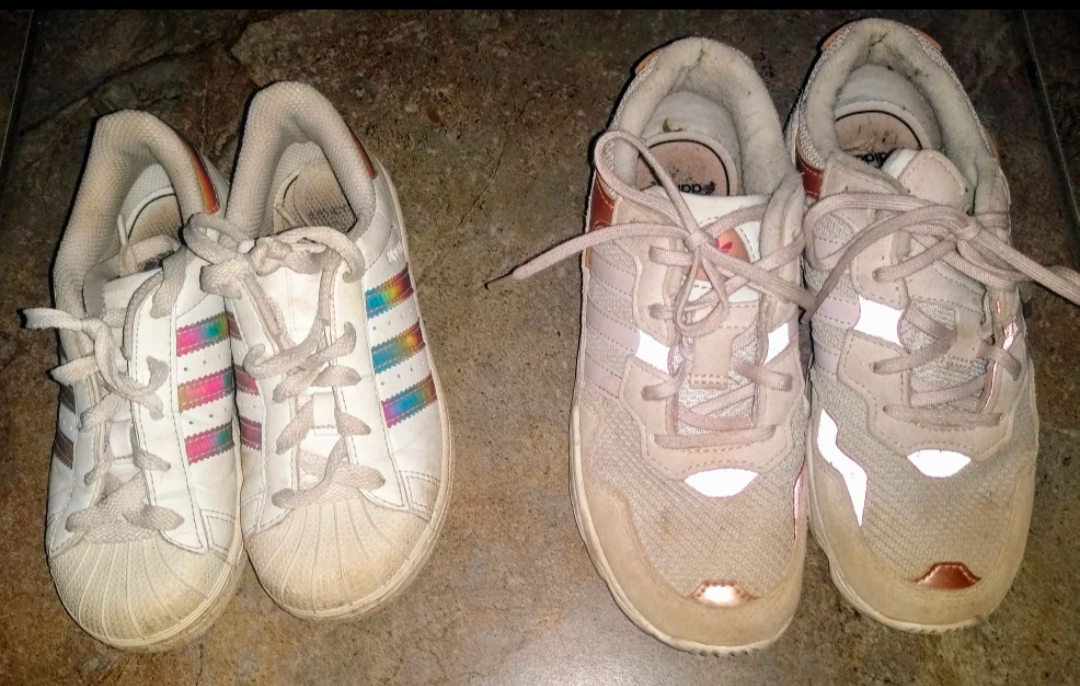 Two pairs of girl's Adidas running shoes both pink and white in excellent used condition. $10 each pair.