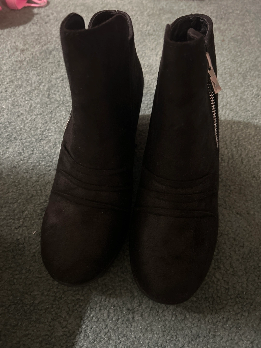 These are a pair of Skechers black wedge ankle boots in a size 6. They have a stylish zipper detail and come with the original box. They feature air-cooled memory foam for extra comfort and support. Boots are brand new