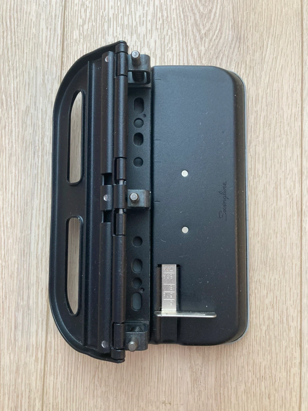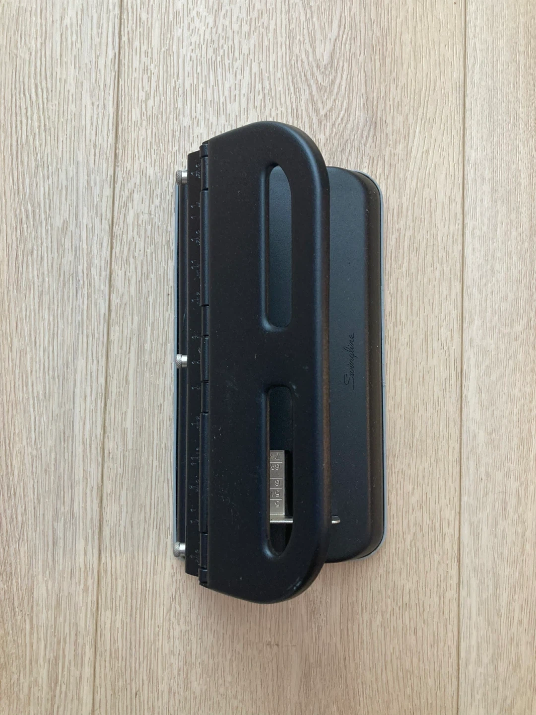Selling a Swingline adjustable paper hole punch. This hole punch adjusts to different paper sizes, making it super versatile. It's in mint condition. Cash only. No e-transfers.