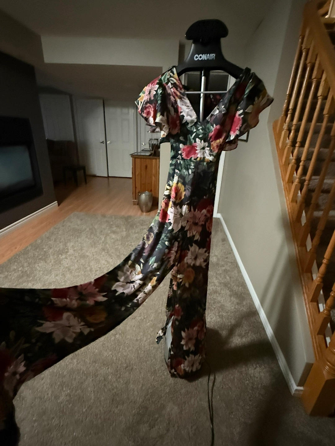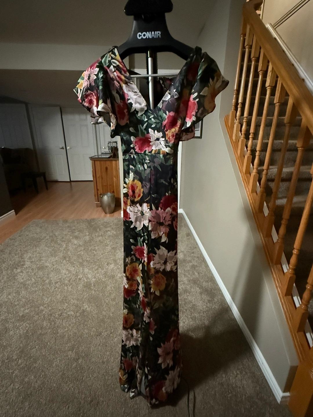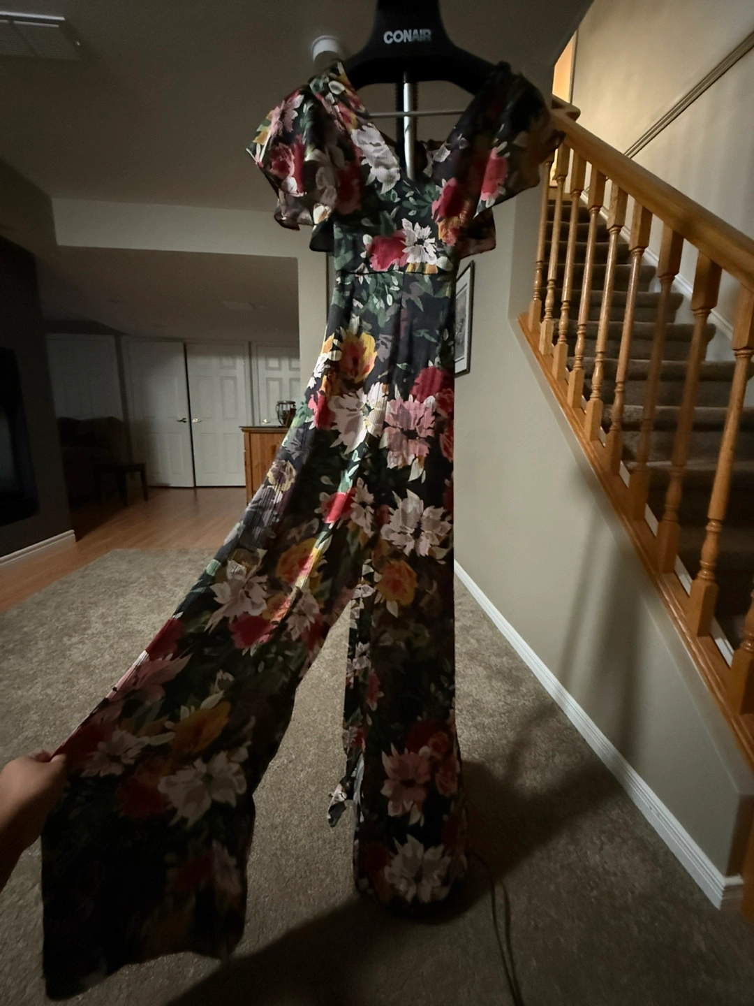 Selling a lovely floral print jumpsuit! It's in great condition and features a flattering V-neckline and flowy wide legs. Perfect for a summer day out or a special occasion