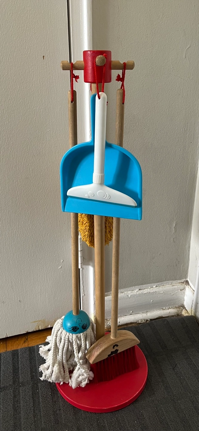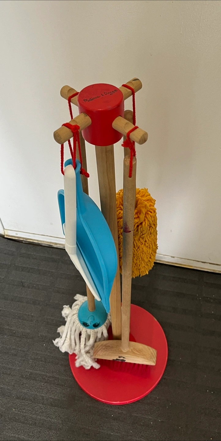 292Selling a Melissa & Doug cleaning set! Get your little one ready to help around the house with this Melissa & Doug cleaning set. Dust! Sweep! Mop! It's perfect for toddlers aged 36 months to 5 years, encouraging imaginative play and helping them learn about household chores. Hours of fun guaranteed! This set is perfect for kids who love to help around the house. Includes a mop, broom, dustpan, and brush, all neatly organized on a stand. Great for imaginative play and teaching responsibility