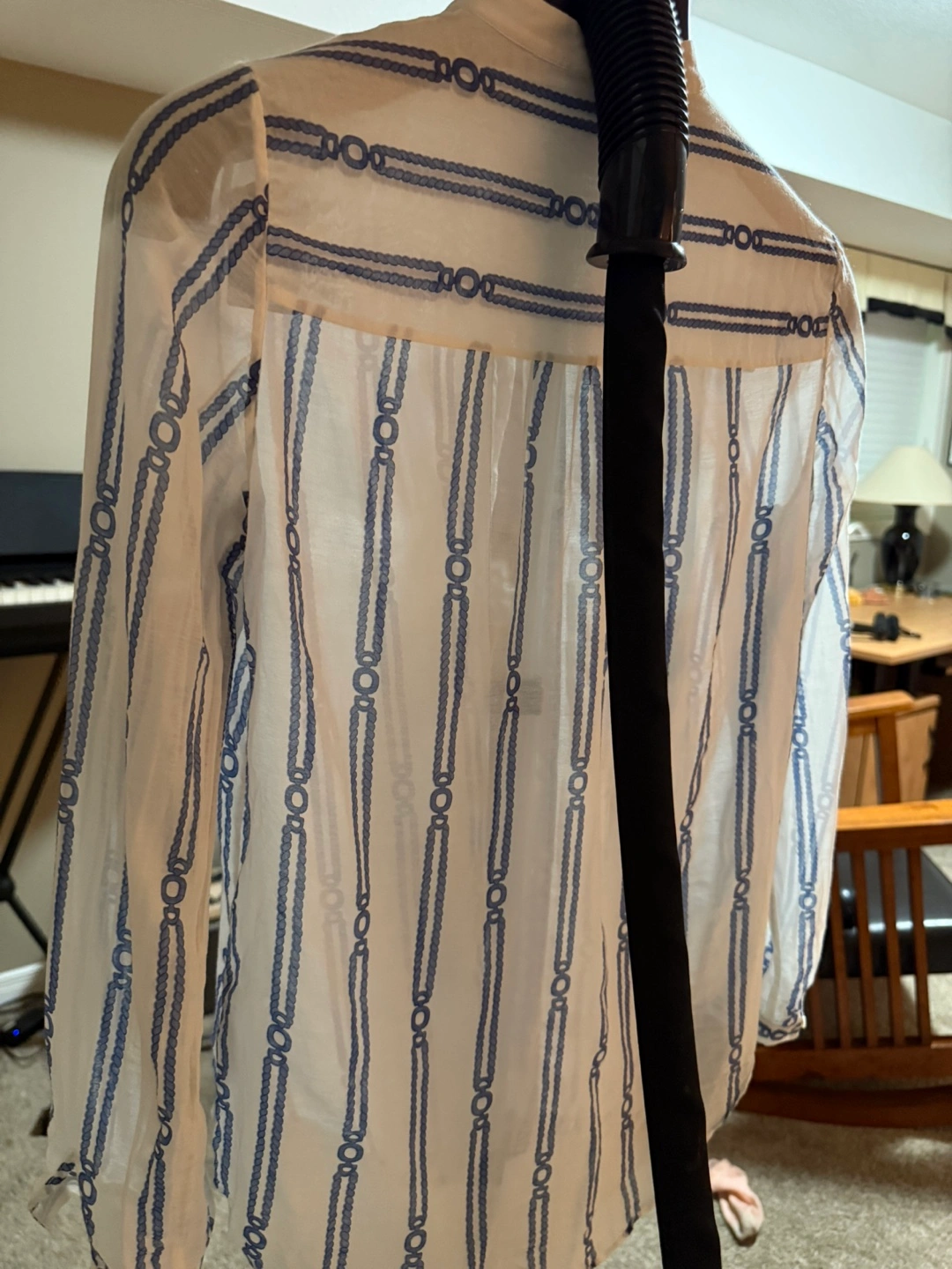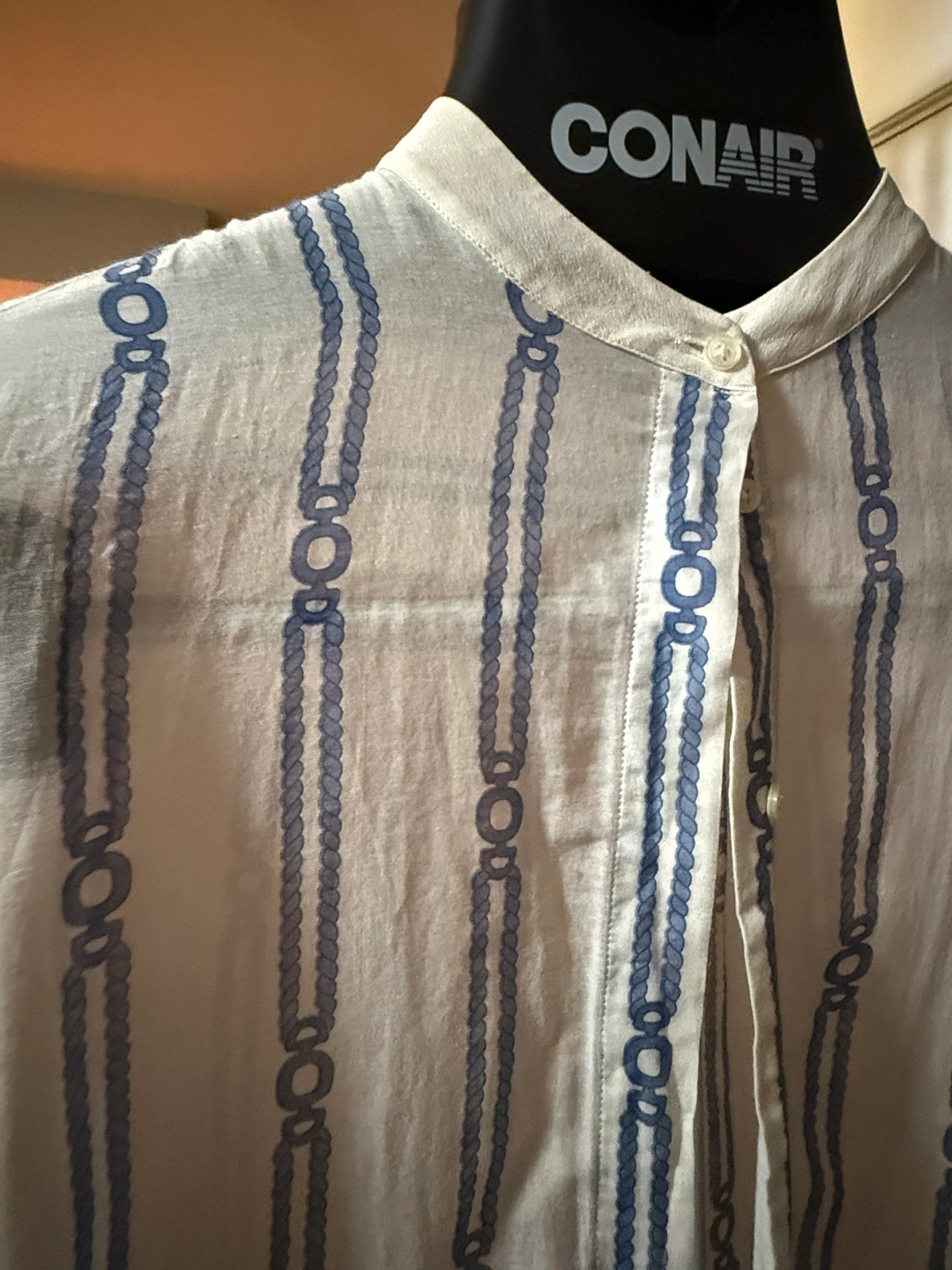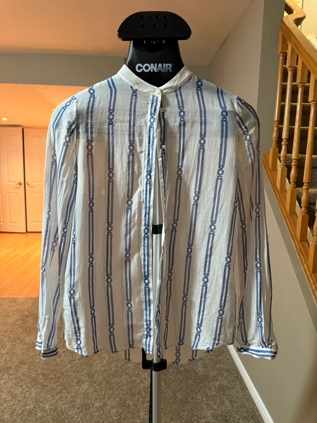 A cute blouse with a unique striped pattern! It features a button-down front and a mandarin collar. Massimo Dutti