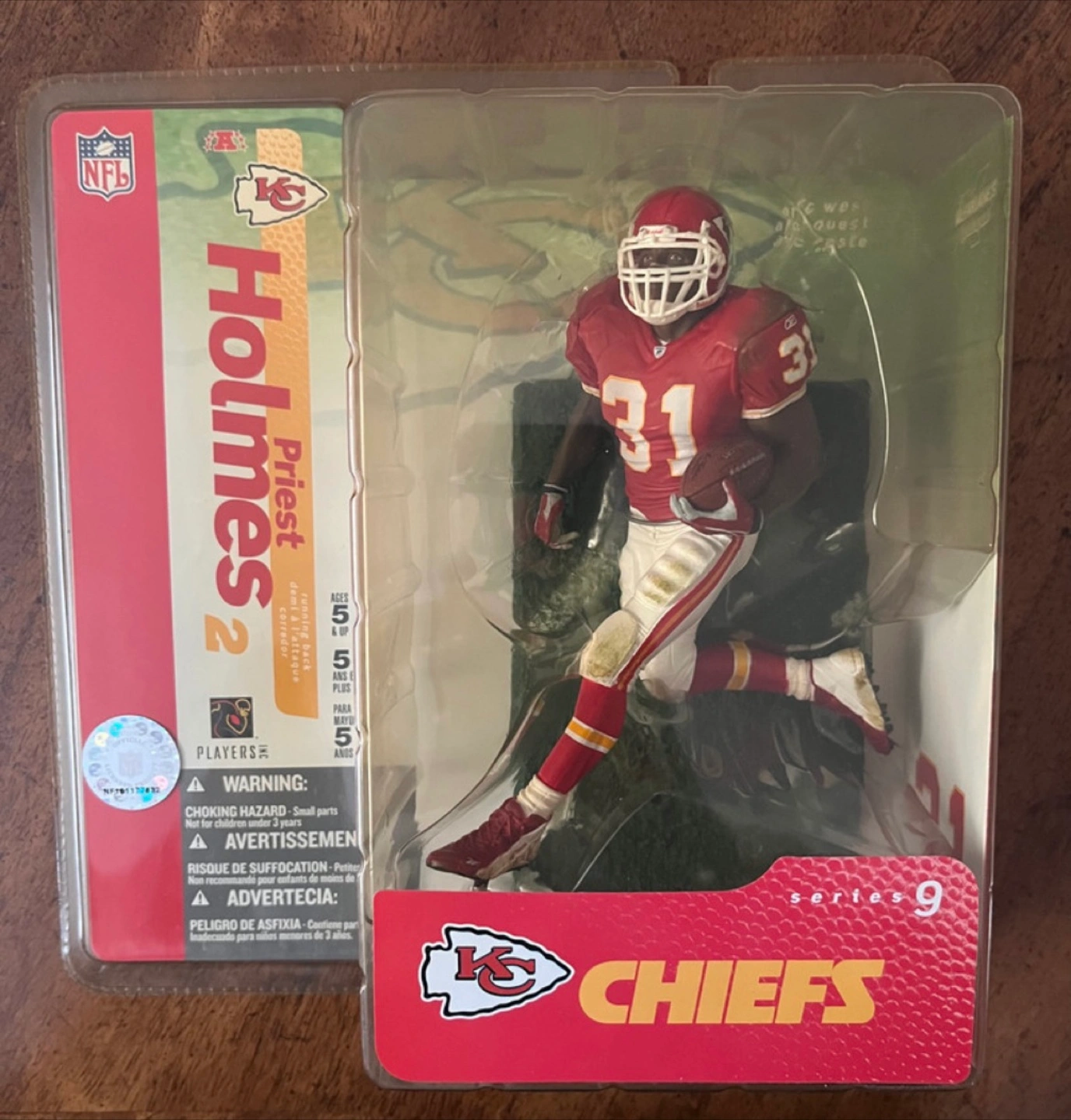 McFarlane Figure NFL Sports Variant *Red Socks* Series 9 Priest Holmes Kansas City Chiefs New in Package 6 inch figure