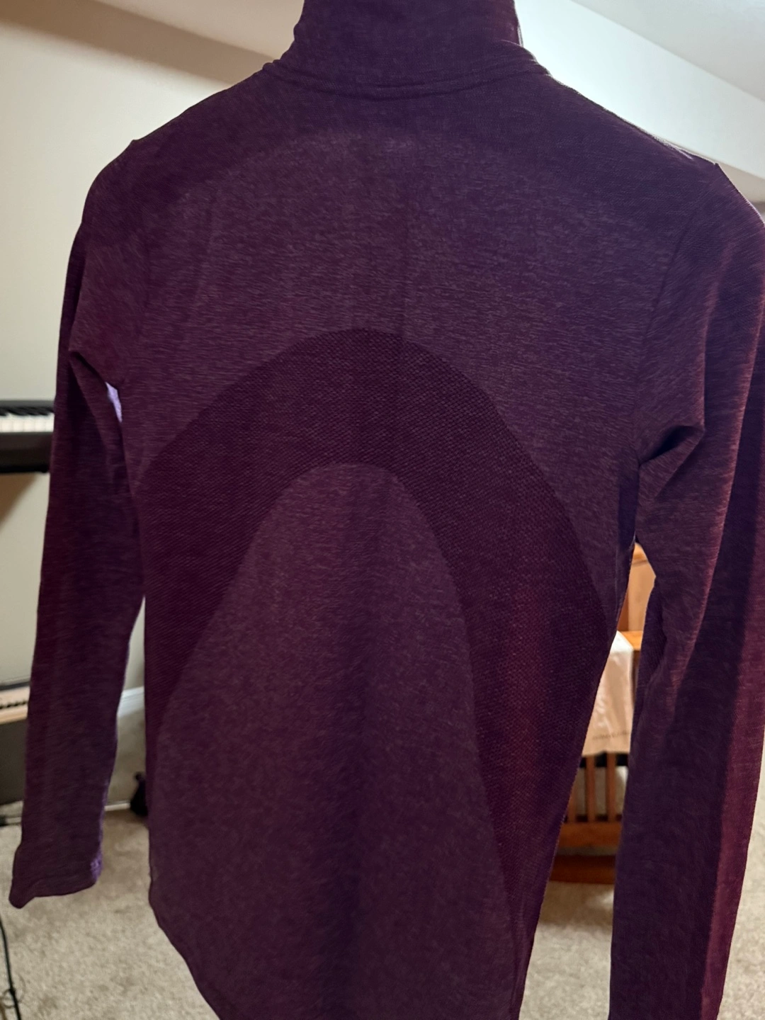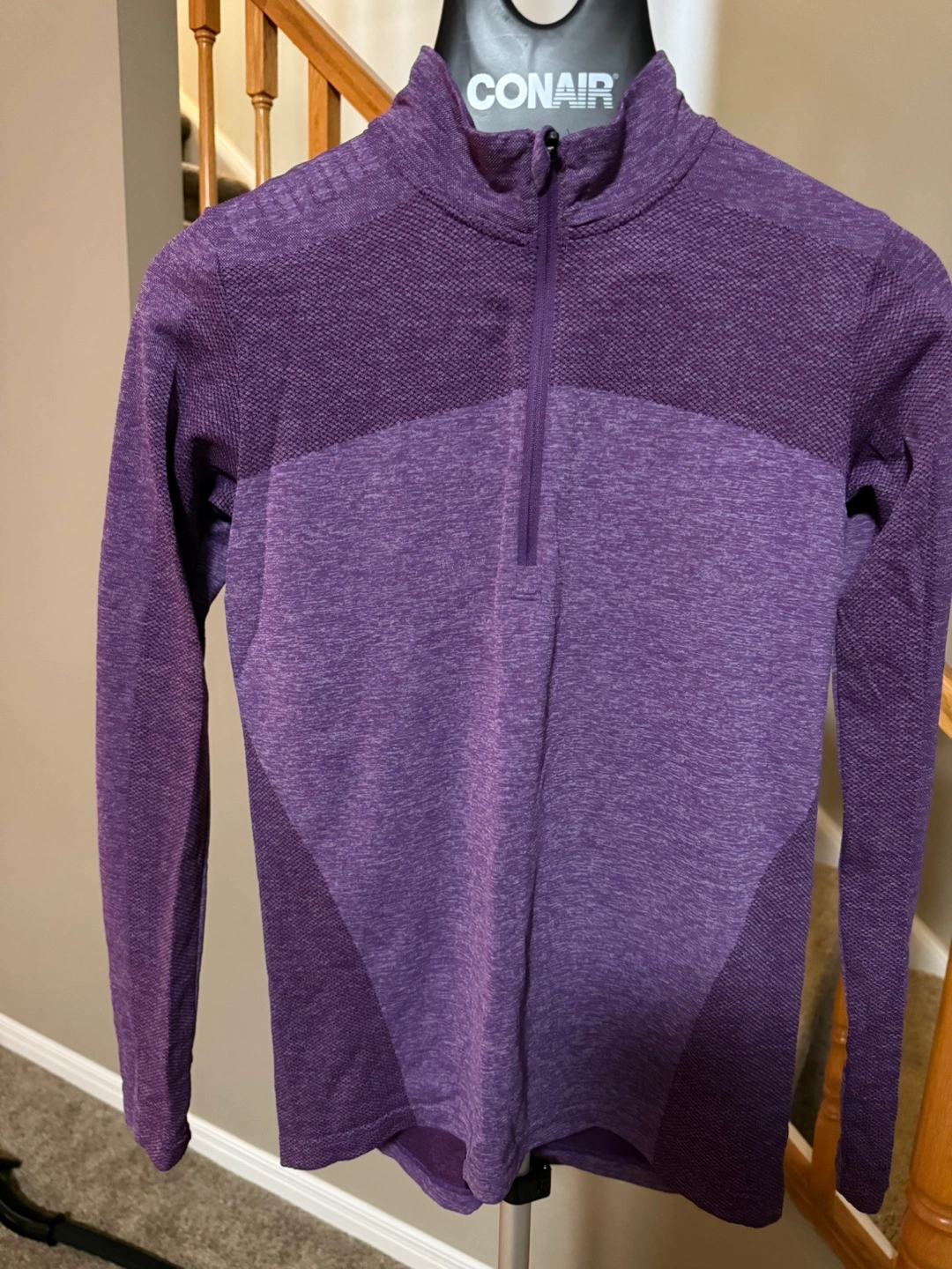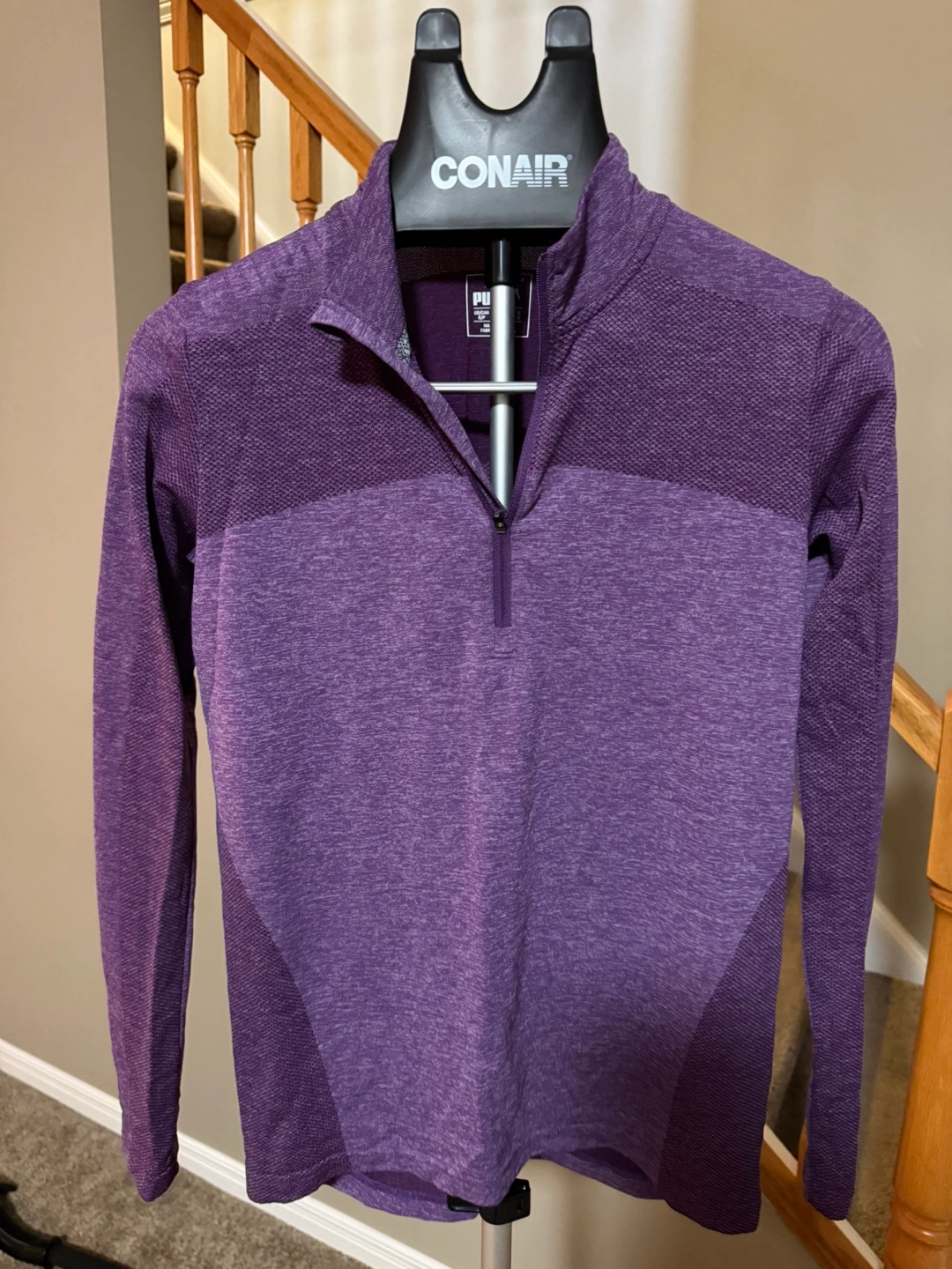 A purple pullover, perfect for layering for a chilly golf day or wearing on its own. It's in great condition