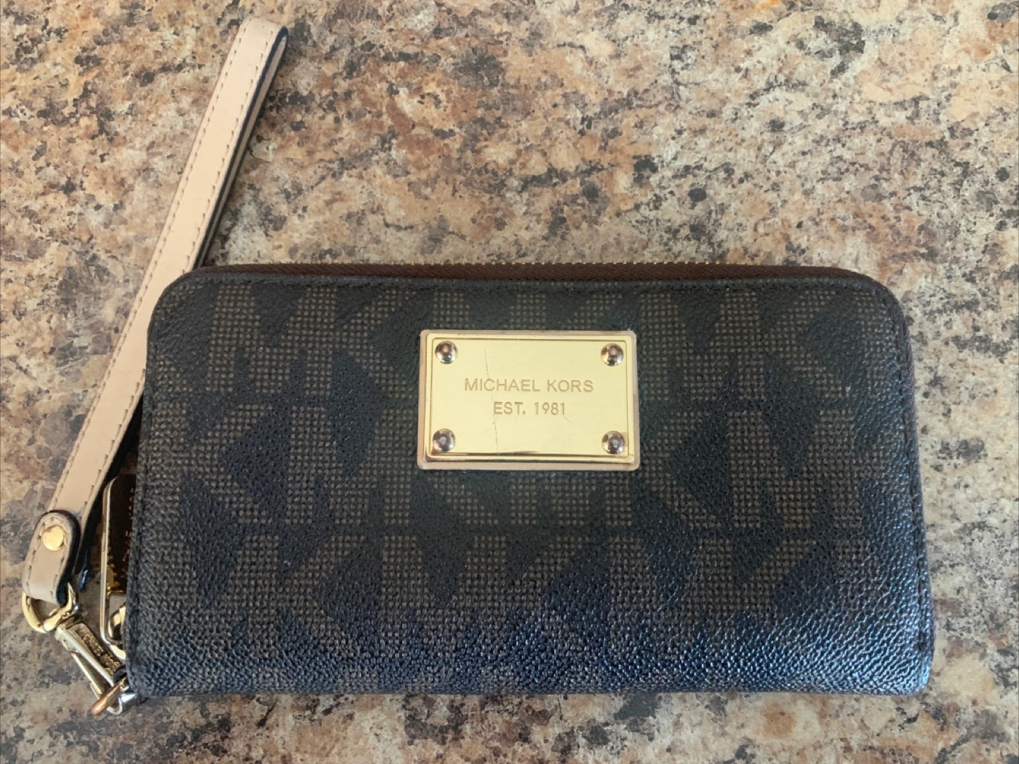 Selling a Michael Kors wristlet wallet. It has a zip-around closure and a removable wrist strap. Perfect for keeping your cards and cash organized!