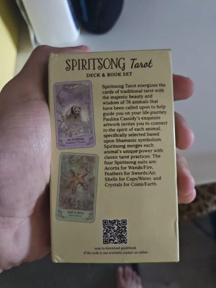 Mini edition of the Spiritsong Tarot by Paulina Cassidy. This is an unofficial/bootleg version — 78 cards, Digital Guidebook (QR Code) Included. Features beautifully illustrated animal guides and keywords on each card. Compact and lightweight — perfect for travel or casual daily pulls.