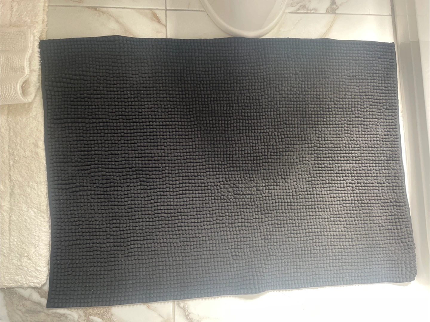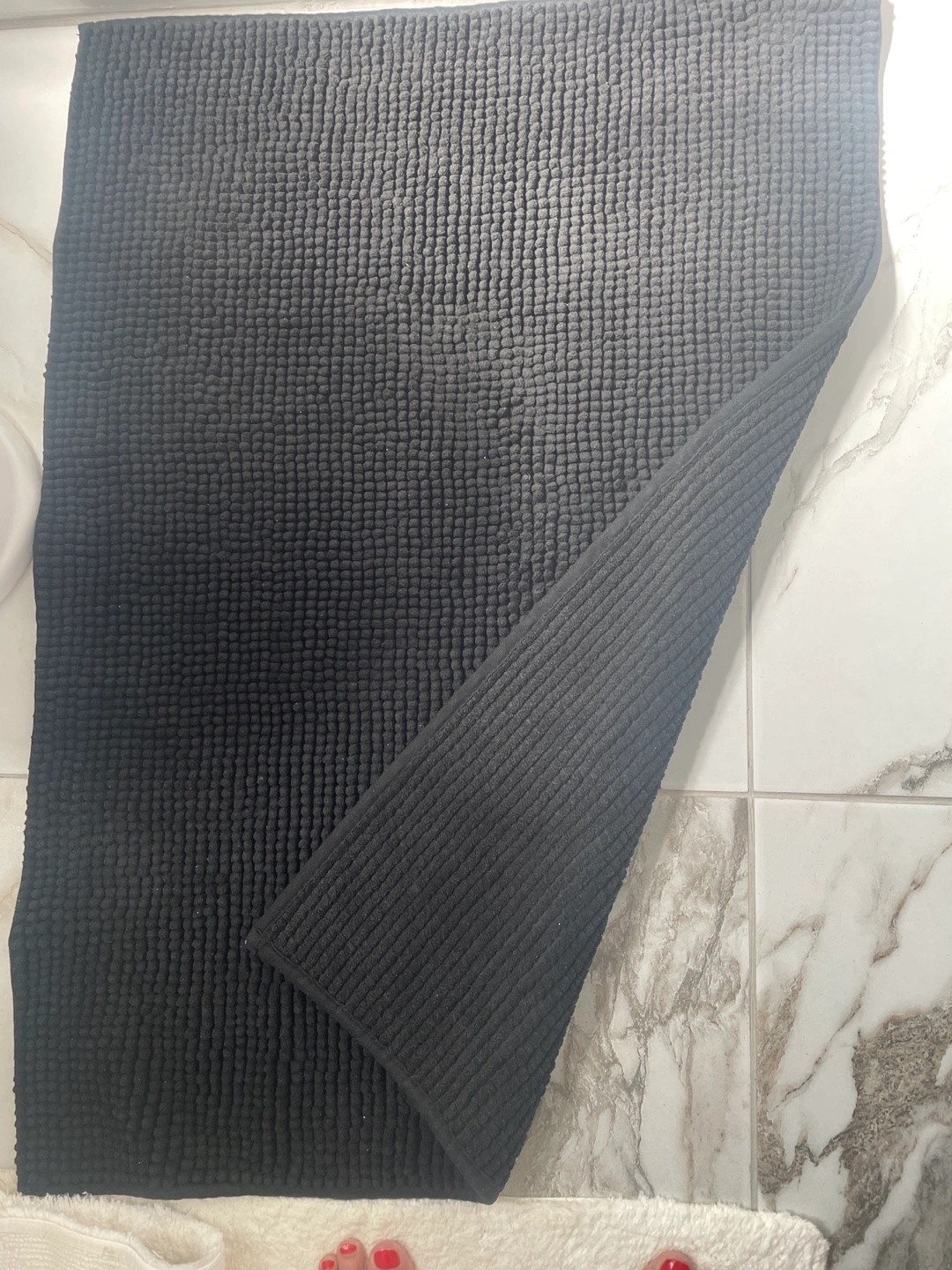 82Here's a super comfy black chenille bath mat 2’ by 3’ for your bathroom! It's in great condition and ready to add a bit of cozy to your space. Black brand new.