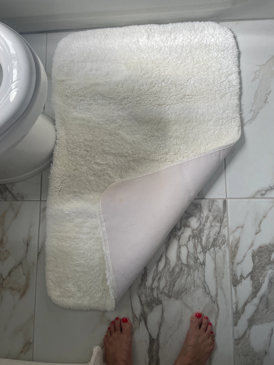 Selling a fluffy white bath mat! 2’ by 3’. I have 2 mats and these are with grips. It's super soft and absorbent, perfect for stepping out of the shower or bath. It's in great condition and ready to add a cozy touch to your bathroom. Each mat is $15.