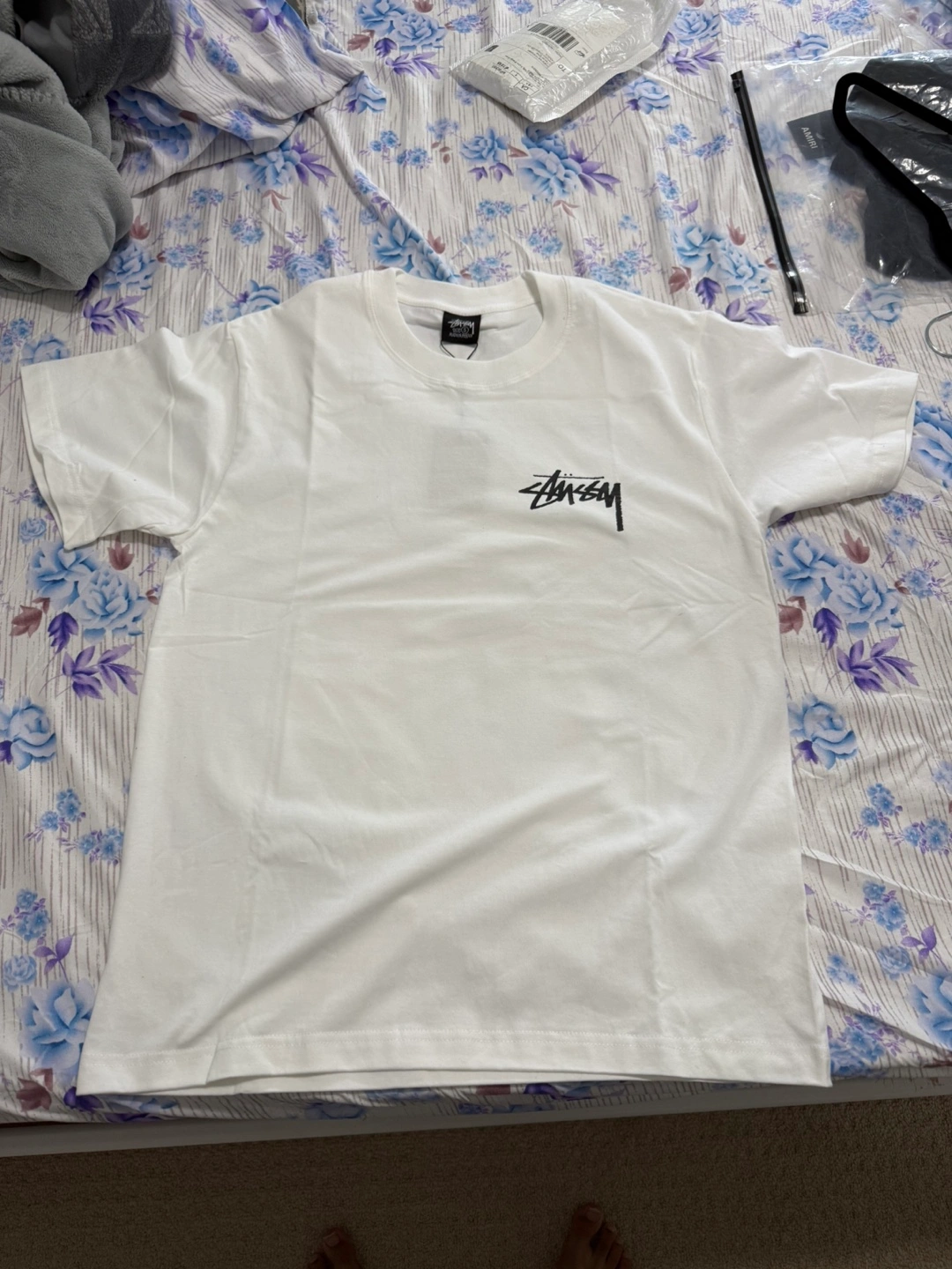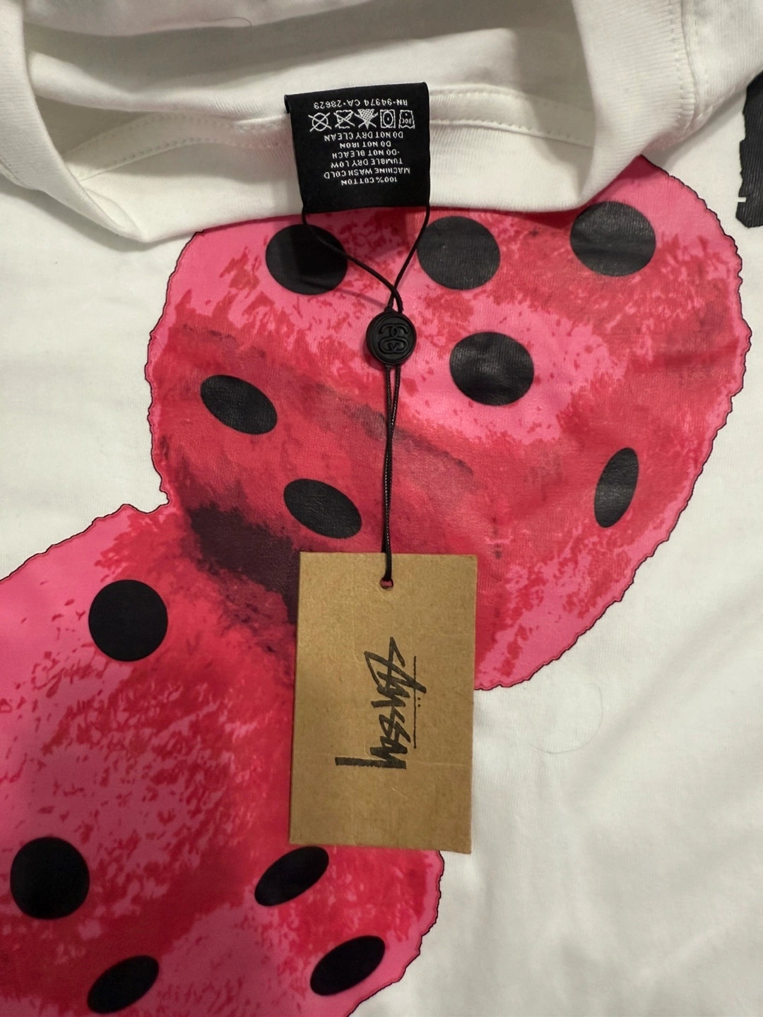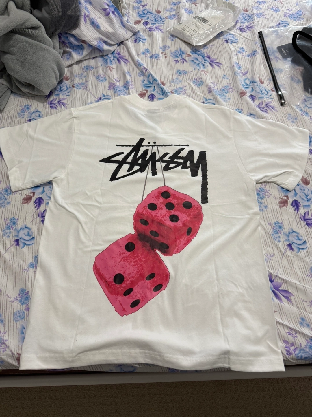 Selling a Stussy t-shirt with a dice design on the back. Small but will fit medium Comes with tags and bag