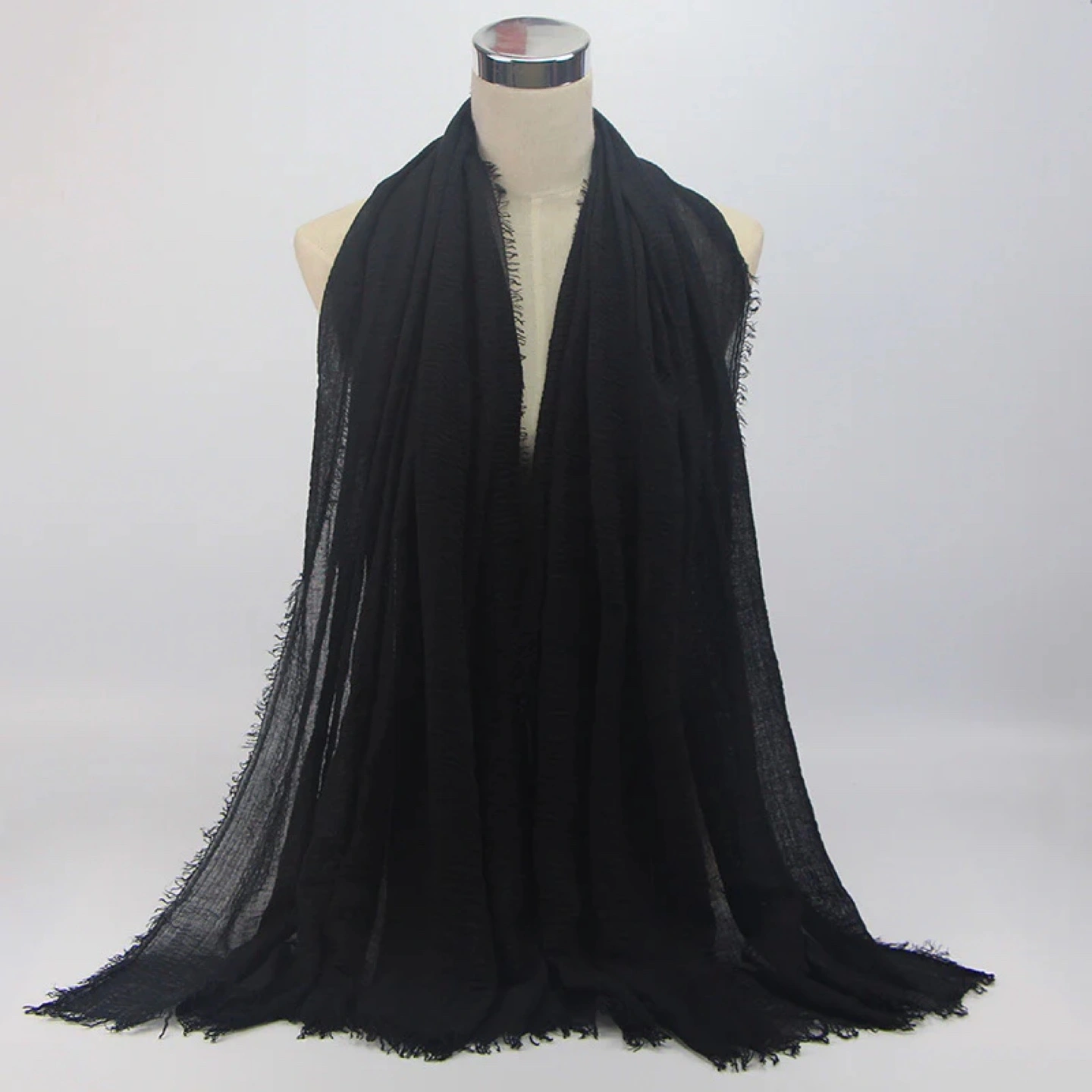 - Here's a lovely black hijab/shawl/scarf! - It's a versatile and classy piece that can add a touch of elegance to any outfit. - Material: 60% cotton, 40% viscose — soft, lightweight, and comfortable.