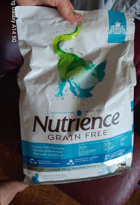 Selling a bag of Nutrience Grain Free Ocean Fish Formula cat food. It's made in Canada and contains 70% protein sources and 30% wholesome fruits and vegetables. It also has glucosamine at 800 mg/kg brand new 647-203-0411