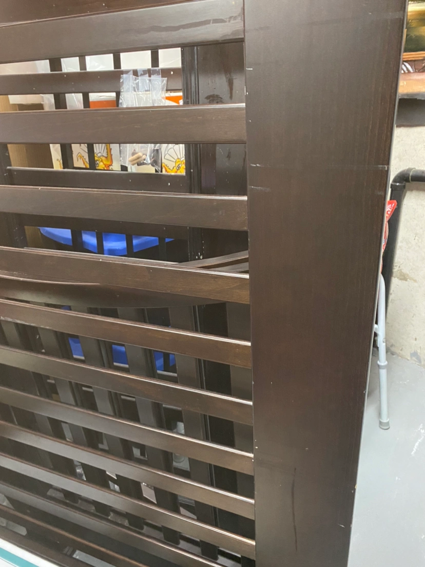 Crib to bed convertible without mattress. Pick up only. Meadowvale and Ellesmere. Just a few scratches at the foot of the crib and teeth marks on the left side. Just needs a wipe down.