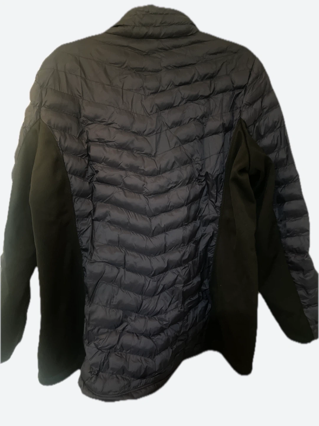 A Women lightweight puffer jacket in dark gray. It features a full zip front and zippered pockets. This jacket is perfect for staying warm during cooler weather.