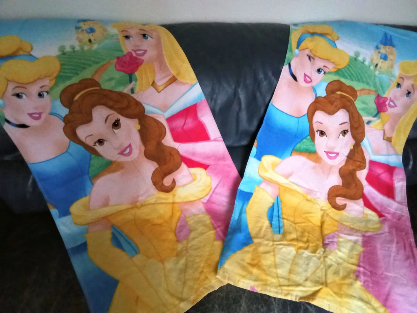 Selling two Disney Princess beach towels. They feature Belle, Cinderella, and Aurora!