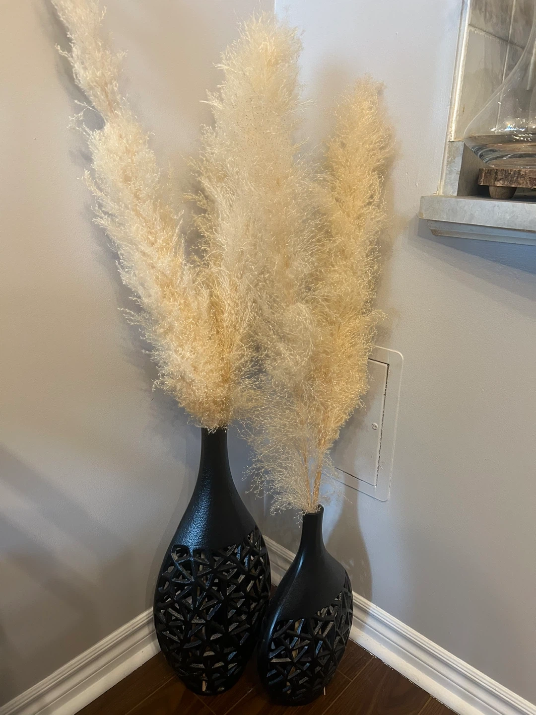 Set of 2 Black Decorative Vases with Dried Pampas Grass