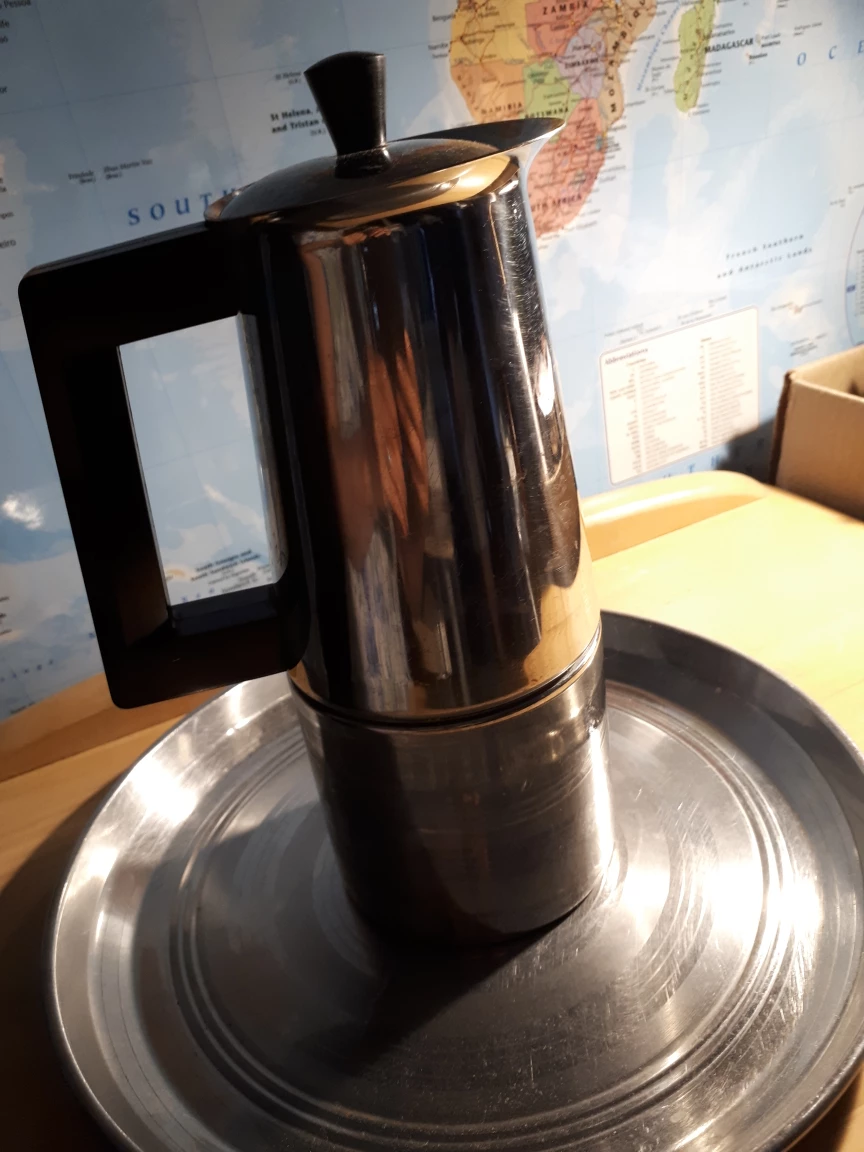 Selling a stainless steel Moka pot! It's in good condition and ready to make some delicious coffee. Perfect for a quick espresso-like brew at home