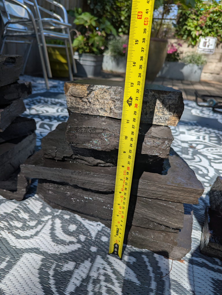 I have sixteen pieces of natural slate flagstone for sale in various sizes (see photos for rough dimensions). Ideal for a small garden or landscaping project. Pick up only.