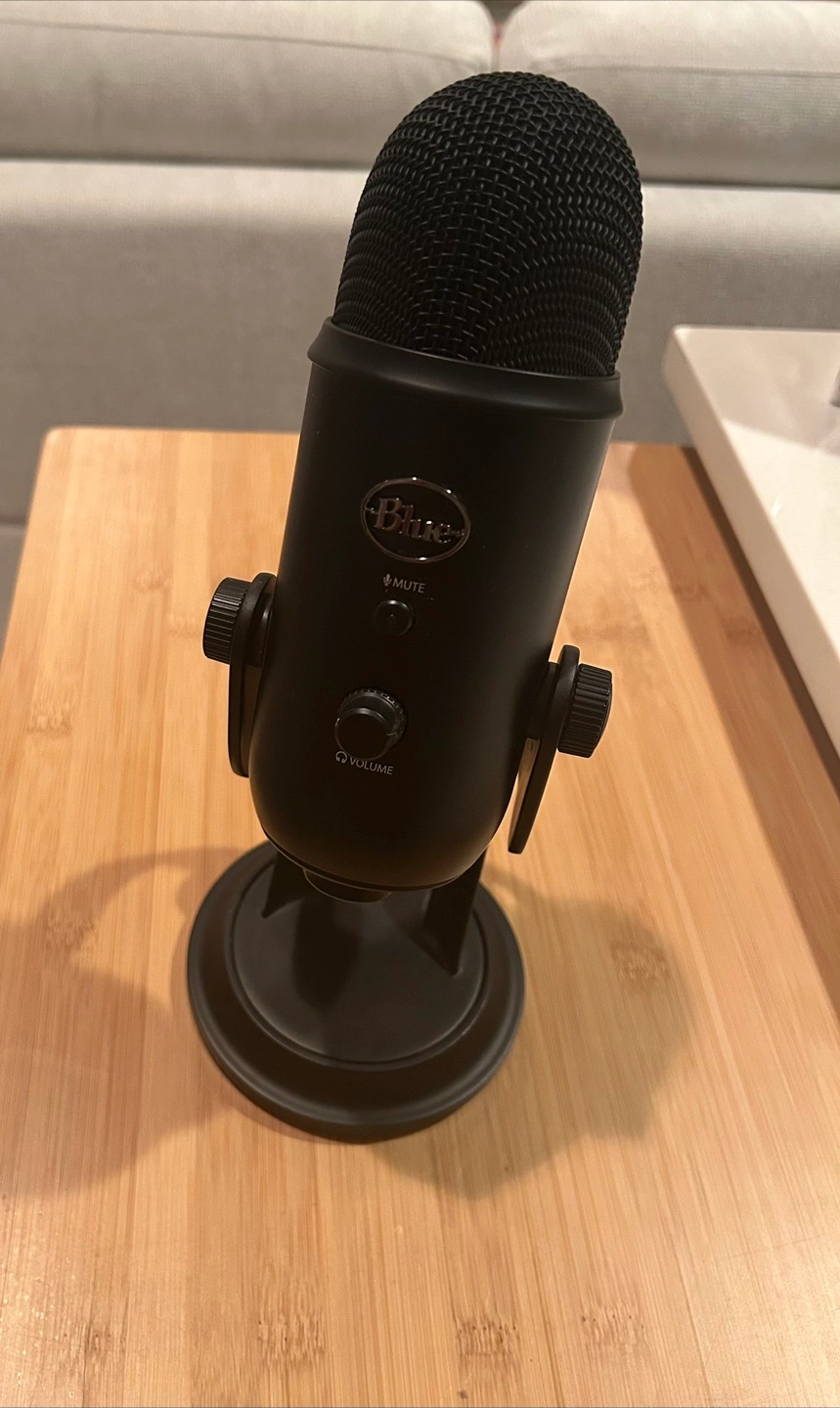 Selling a Blue Yeti USB microphone in the Blackout Edition! Was a gift, It's in great shape only used once or twice but lost the cord and never found the time to buy a new one. This microphone is perfect for podcasting, streaming, or recording music. It has multiple pattern modes for versatility.