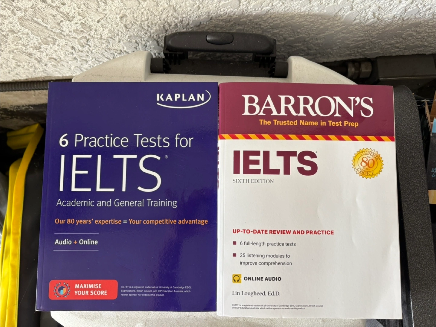 Selling two IELTS practice test books: Kaplan's "6 Practice Tests for IELTS Academic and General Training" and Barron's "IELTS Sixth Edition". Both are great resources for preparing for the IELTS exam!