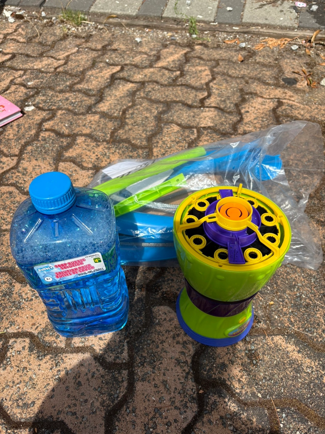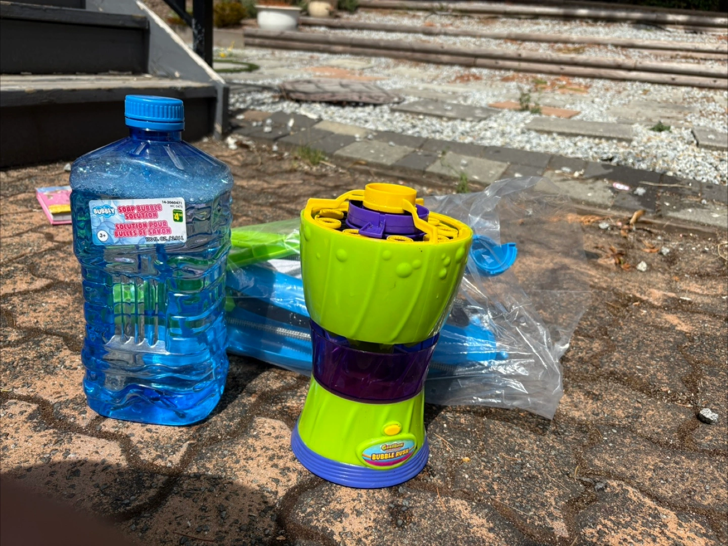 Selling a Gazillion bubble machine and a “kid in a bubble” toy that makes tons of bubbles! Comes with bubble solution and instructions. No box included but you can also take the bubble solution (3 packs) and 2 of them are completely closed and original.