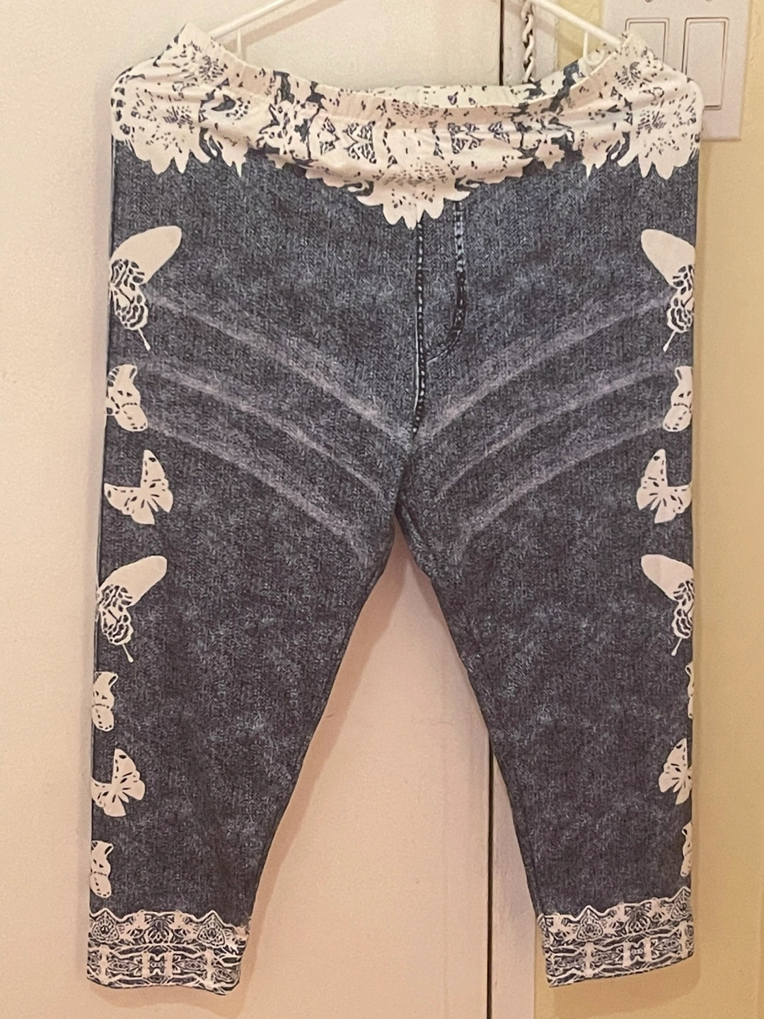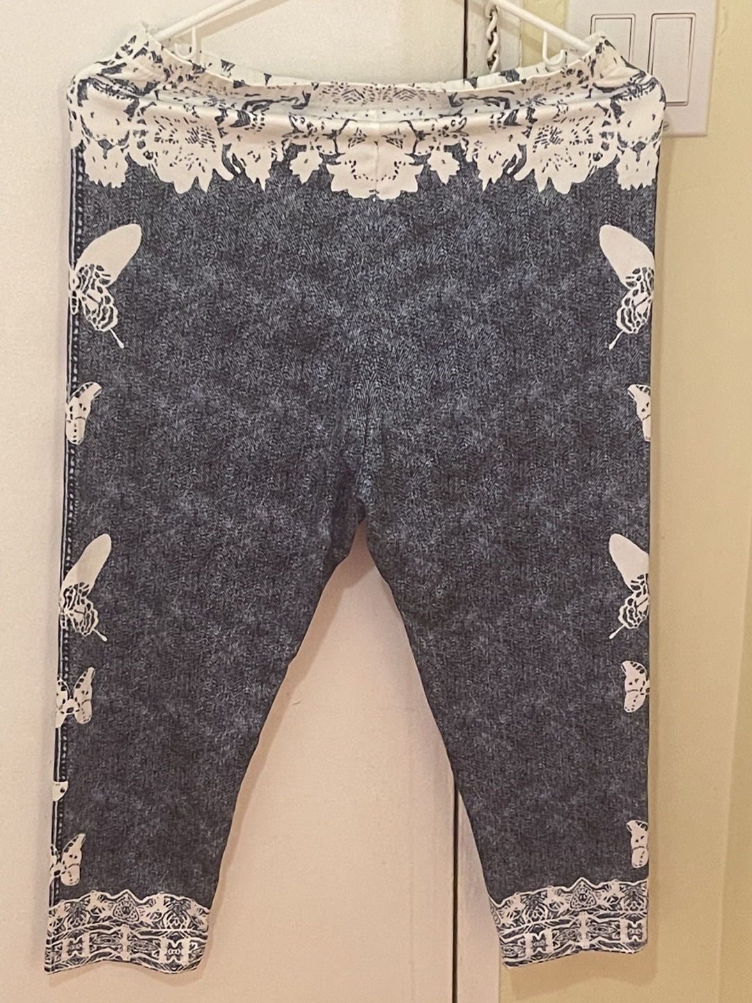 Cute capri leggings with a butterfly print design! They're new and in great condition and ready for a new home. Size L. Price $10 negotiable