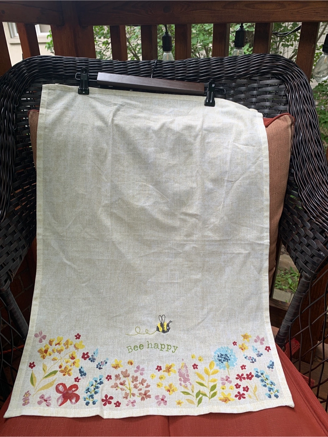Here's a cute tea towel from Cooksmart England! It's got a sweet bee and floral design, perfect for adding a touch of charm to your kitchen. Made of 100% cotton and has no tears or stains. Flower pattern is printed on front of tea towel and the bee is put on with embroidery. 25” long and 18” wide. Super cute!