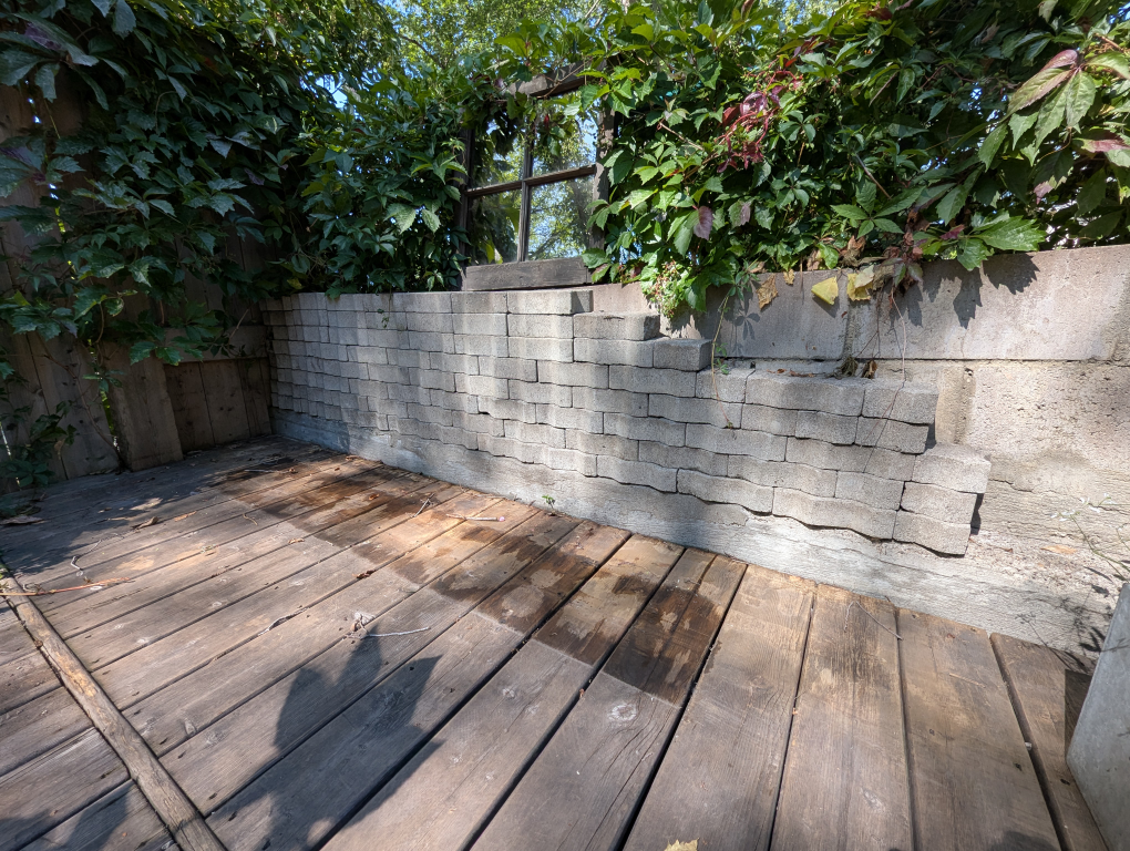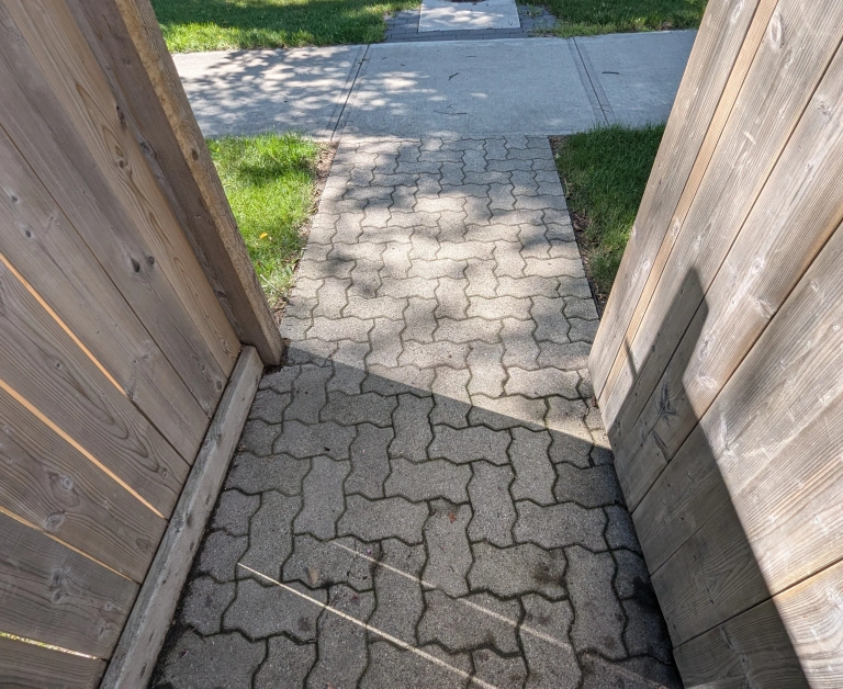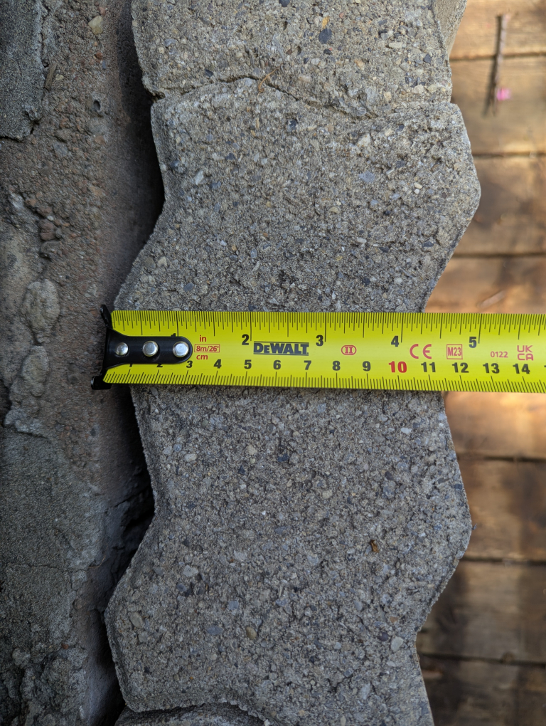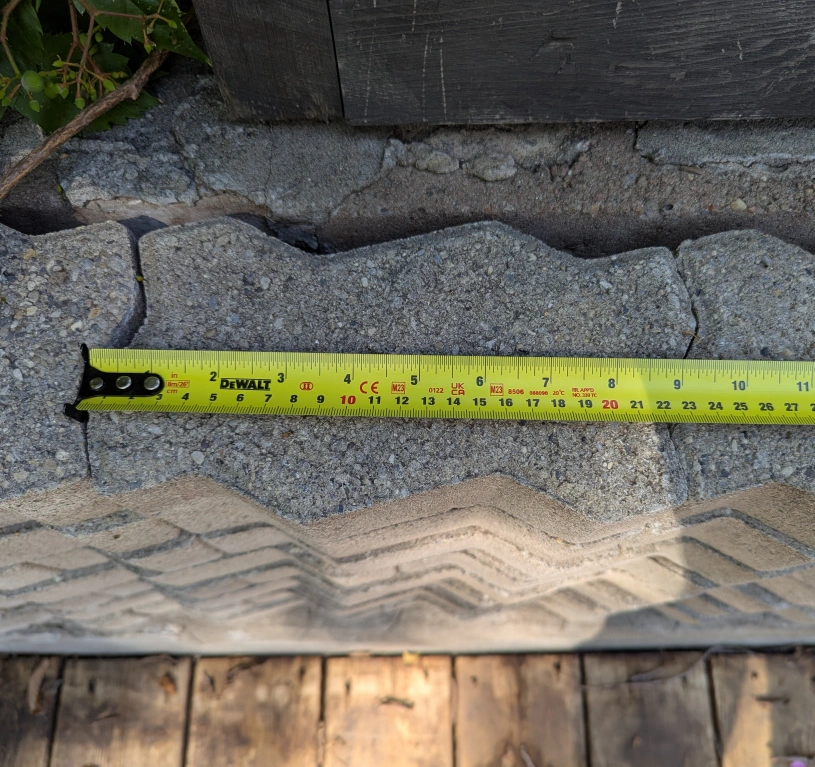 I have a little over 20ft² of 9" x 4.5" interlocking patio bricks available. There are 75 whole pieces (mostly centre pieces plus a few straight edge end pieces) and a dozen or so half pieces cut from a previous project (these are not included in the brick total nor square footage calculation). There should be enough here to tackle a short sidewalk like the one I used them for (photo included for reference), a BBQ pad, or some other small project.
