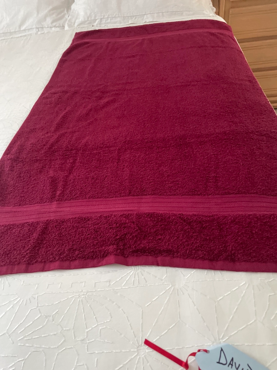 Selling a Fieldcrest towel in a dark red colour. It's in great condition and ready for a new home!. 30” by 52” brand new towel.