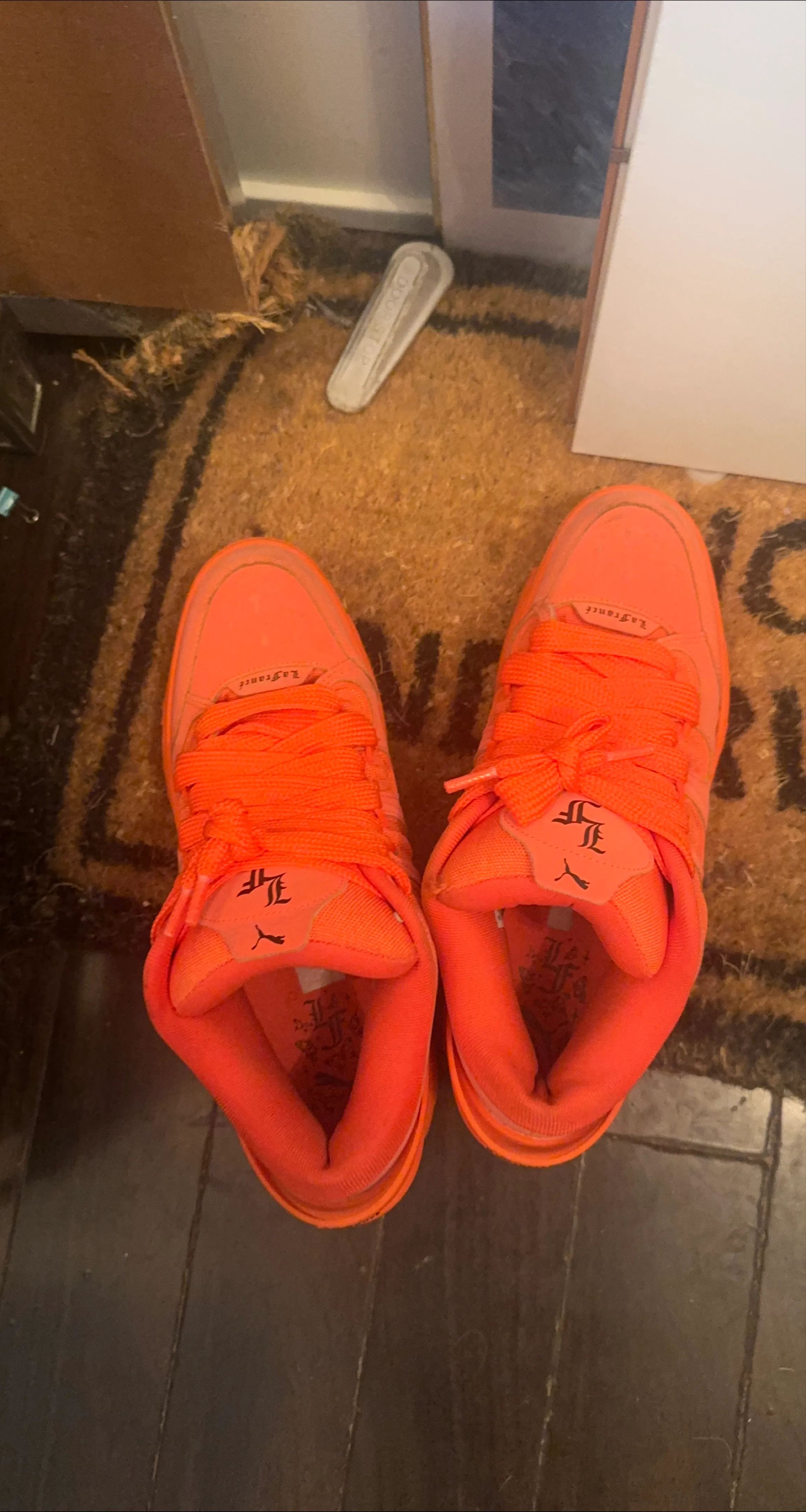 Selling a pair of Puma LaFrance sneakers in a vibrant orange colour. These shoes have a unique design and are in good condition. Perfect for adding a pop of colour to your outfit!