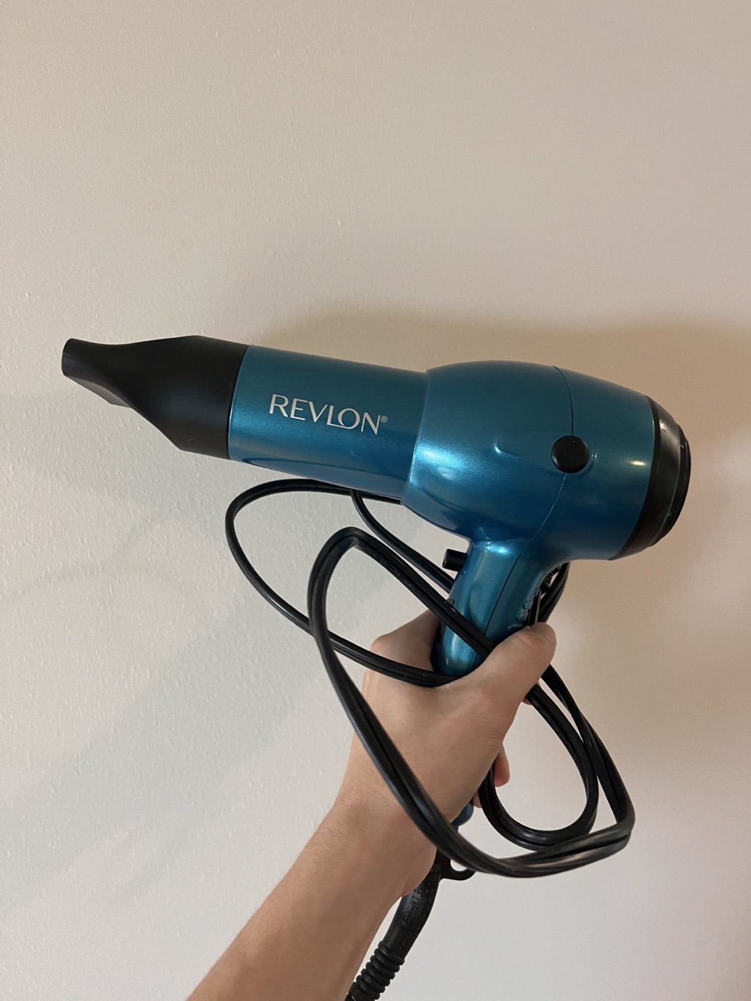 Selling a Revlon hair dryer in a nice blue colour. It's in great shape and ready for a new home! Perfect for quick and easy styling.