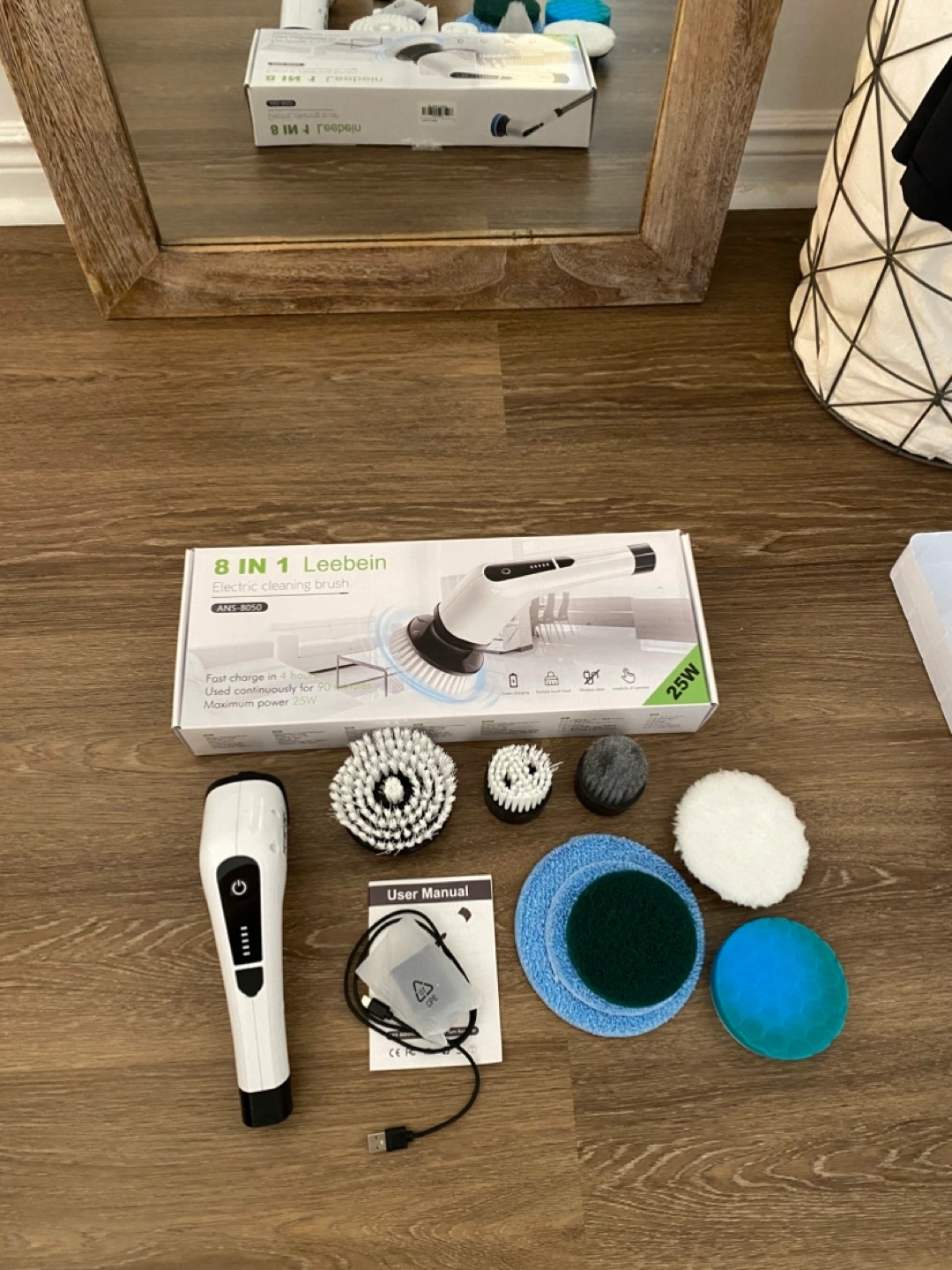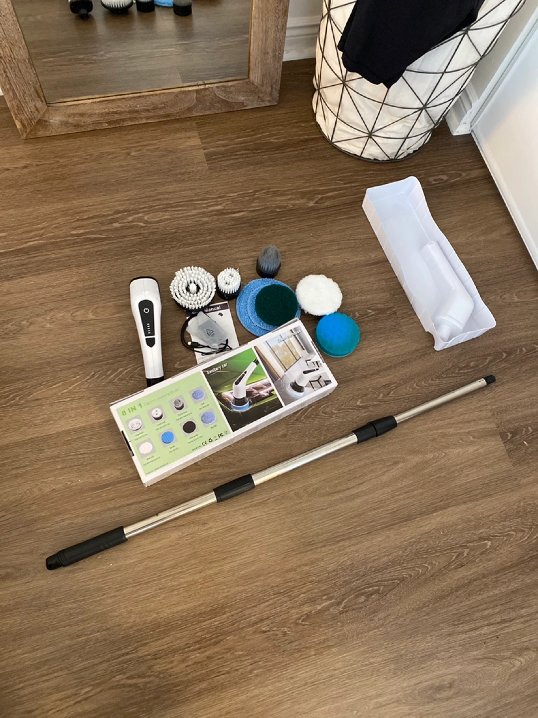Selling a Leebein 8 in 1 electric cleaning brush! It comes with multiple brush heads for different cleaning tasks around the house or car. Also includes the user manual, extension pole and charger! Only used once. In great condition and ready for a new owner who will utilize it more than I am.
