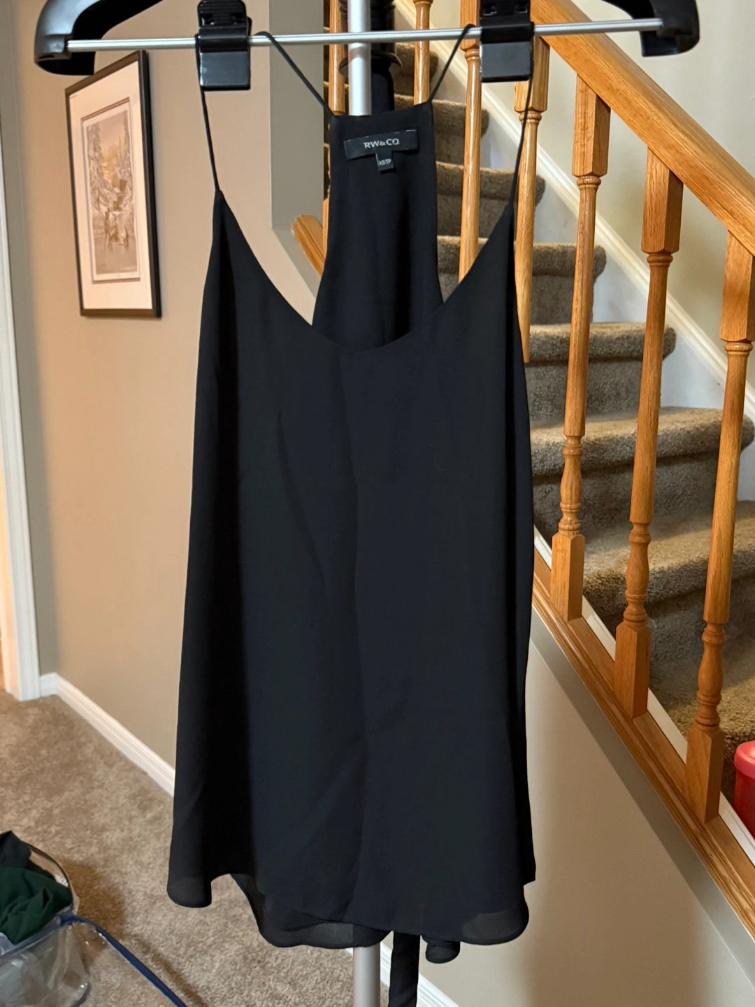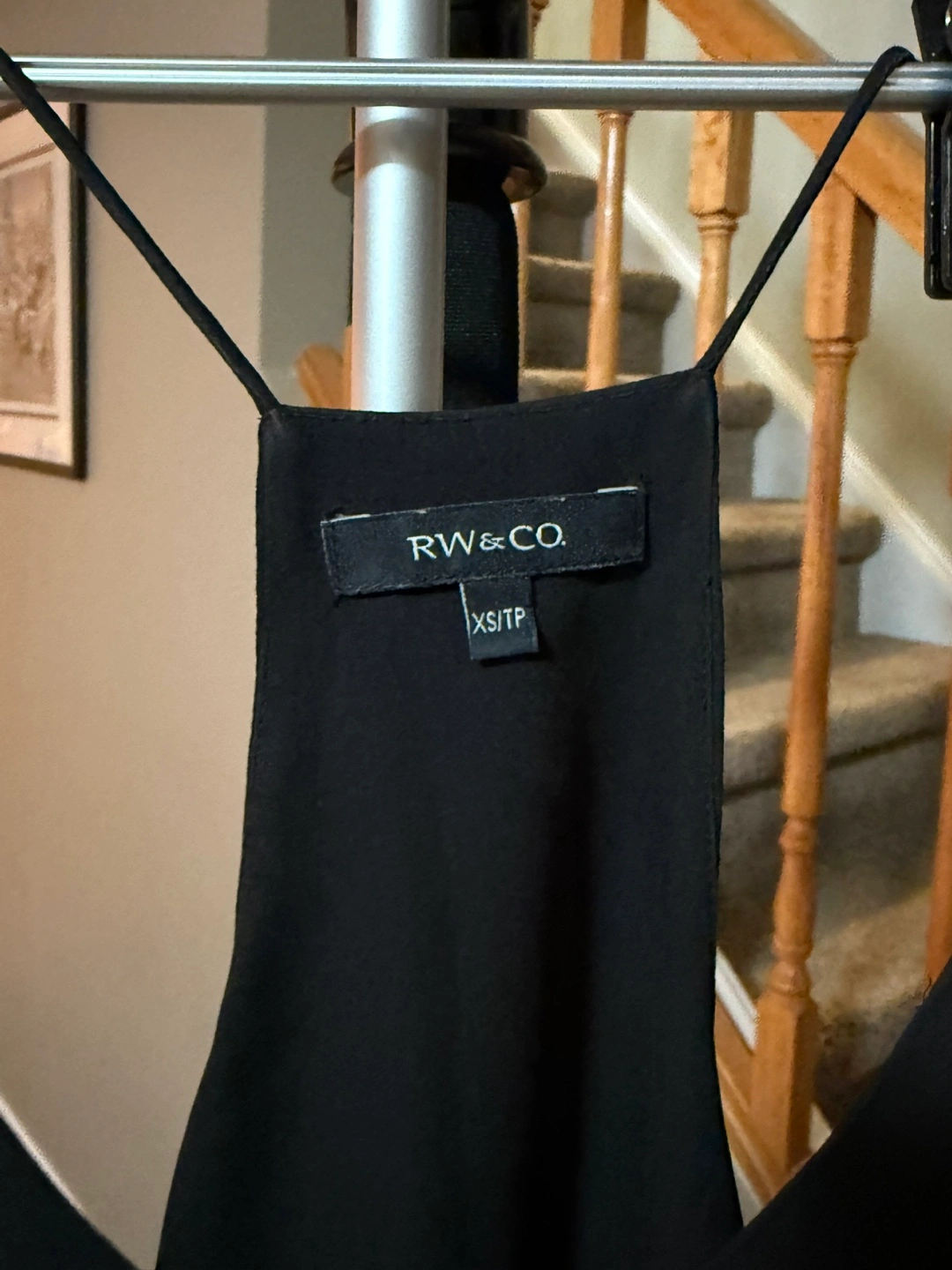 Selling a cute black cami tank from RW&CO. It's in great condition and perfect for layering or wearing on its own. Size is XS/TP