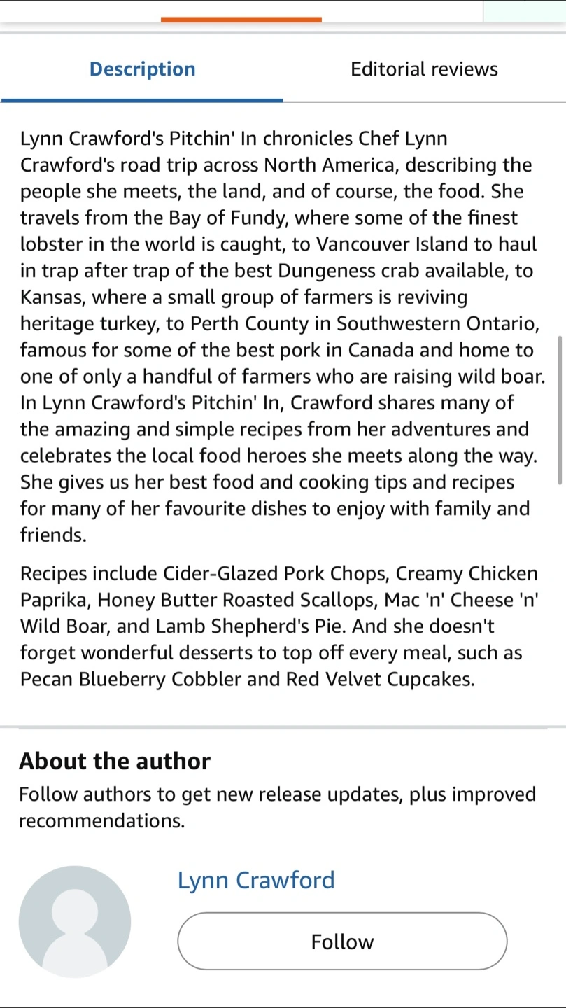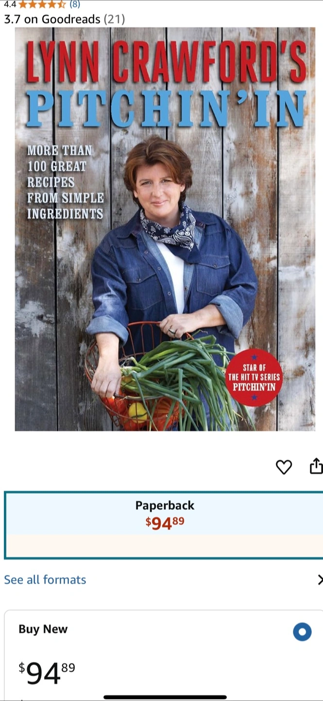 - Hardcopy of Lynn Crawford's Pitchin' In cookbook - More than 100 great recipes from simple ingredients