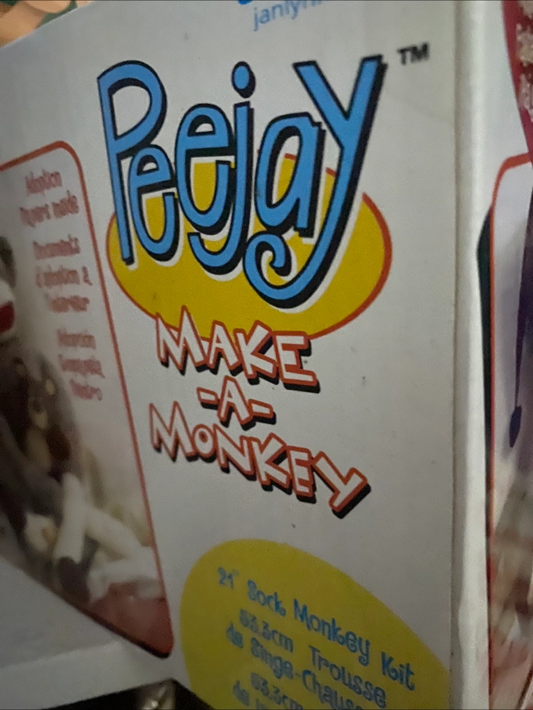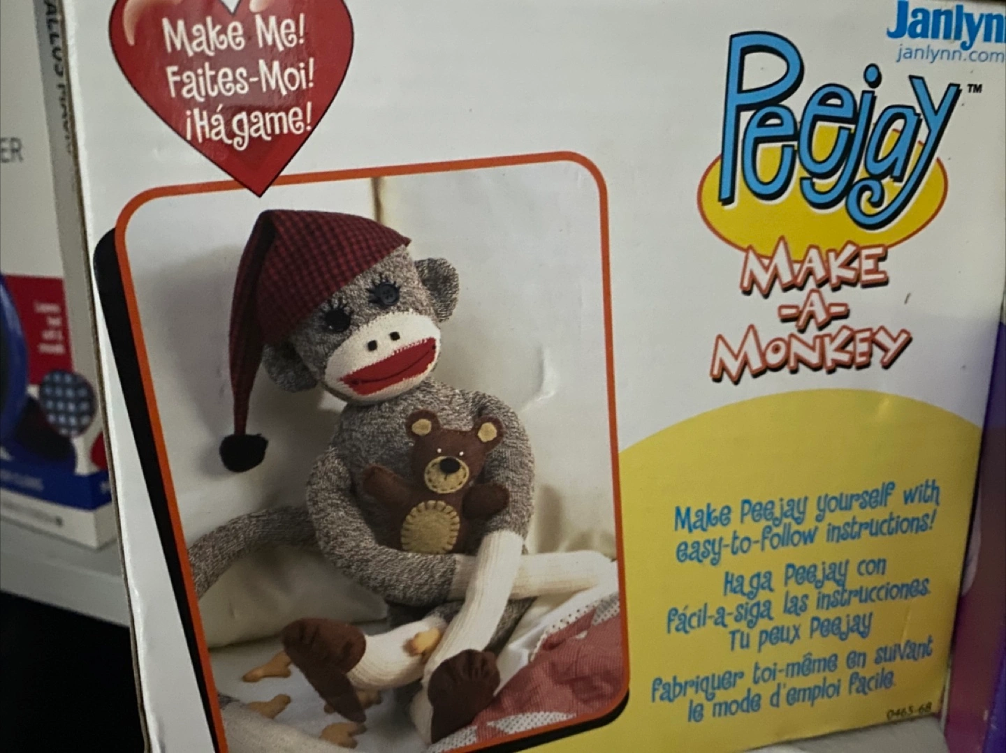 10I'm selling a Peejay Make-A-Monkey sock monkey kit! It comes with easy-to-follow instructions to make your own sock monkey. The kit makes a 21" sock monkey