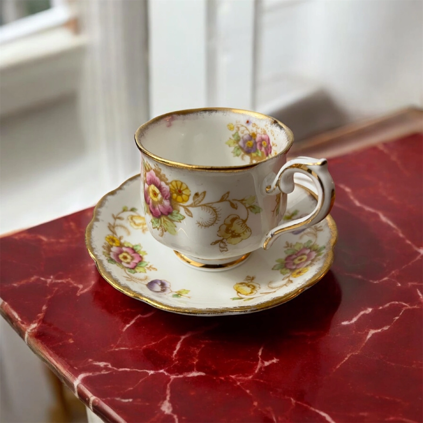 Selling a lovely Royal Albert Evesham teacup and saucer set! The delicate floral pattern and gold trim give it a classic, elegant look. Perfect for adding a touch of vintage charm to your tea time