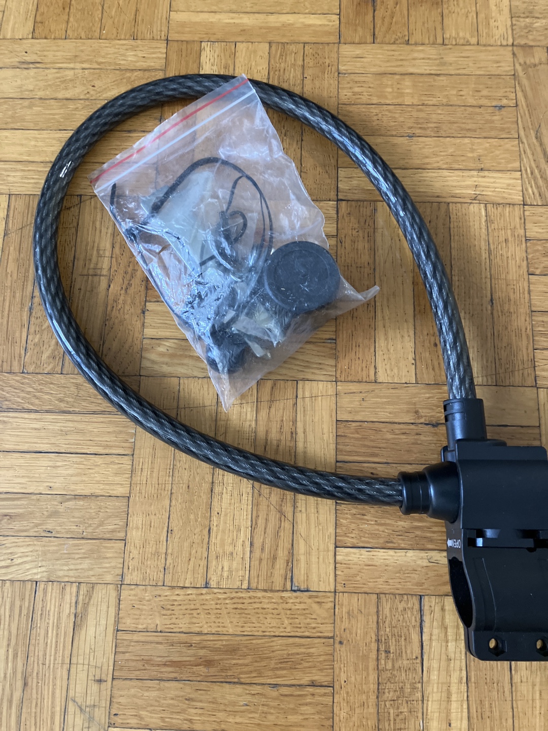 Selling a bike lock that comes with its mounting bracket and keys. It's in great shape and ready to keep your bike secure!