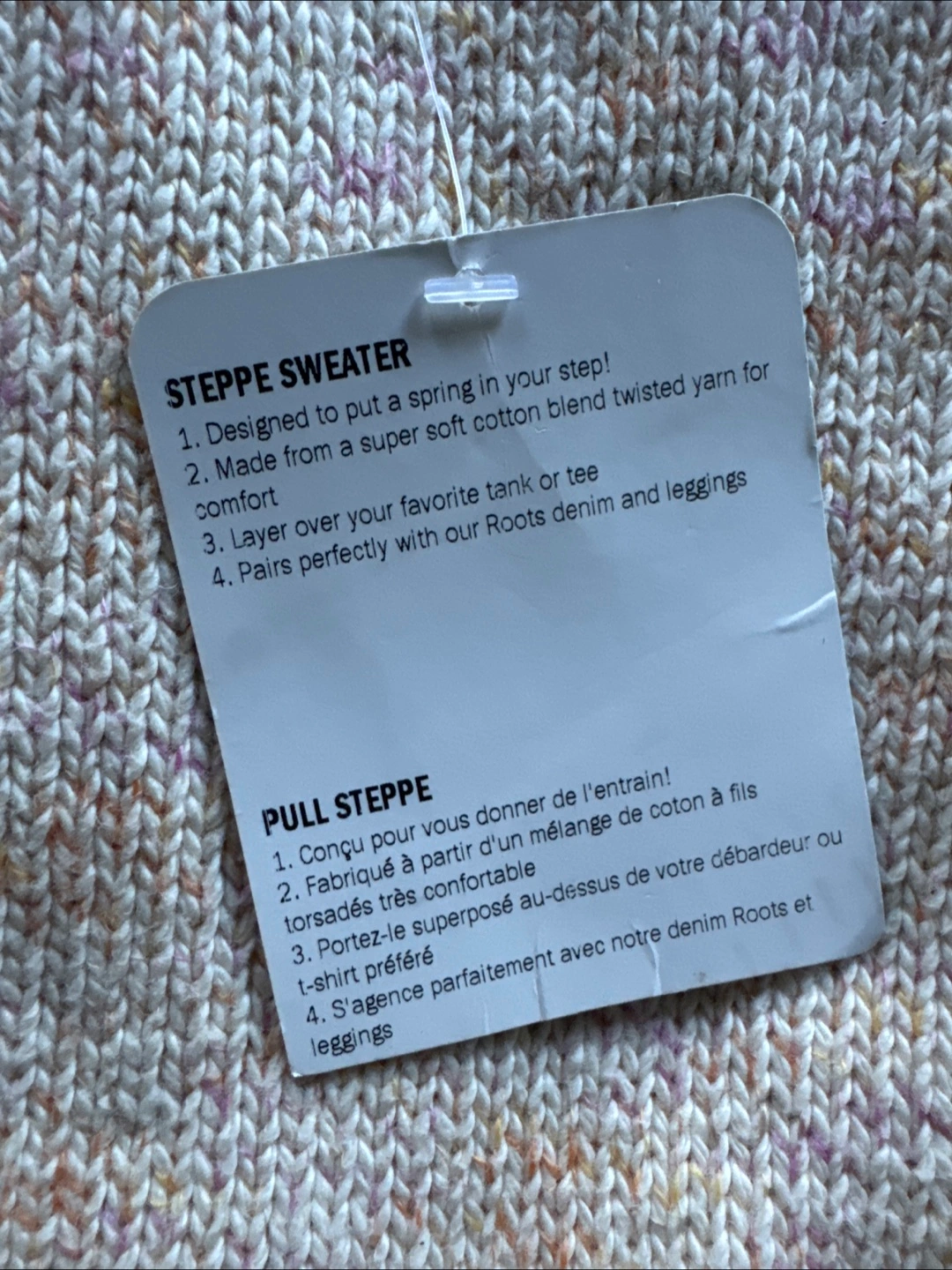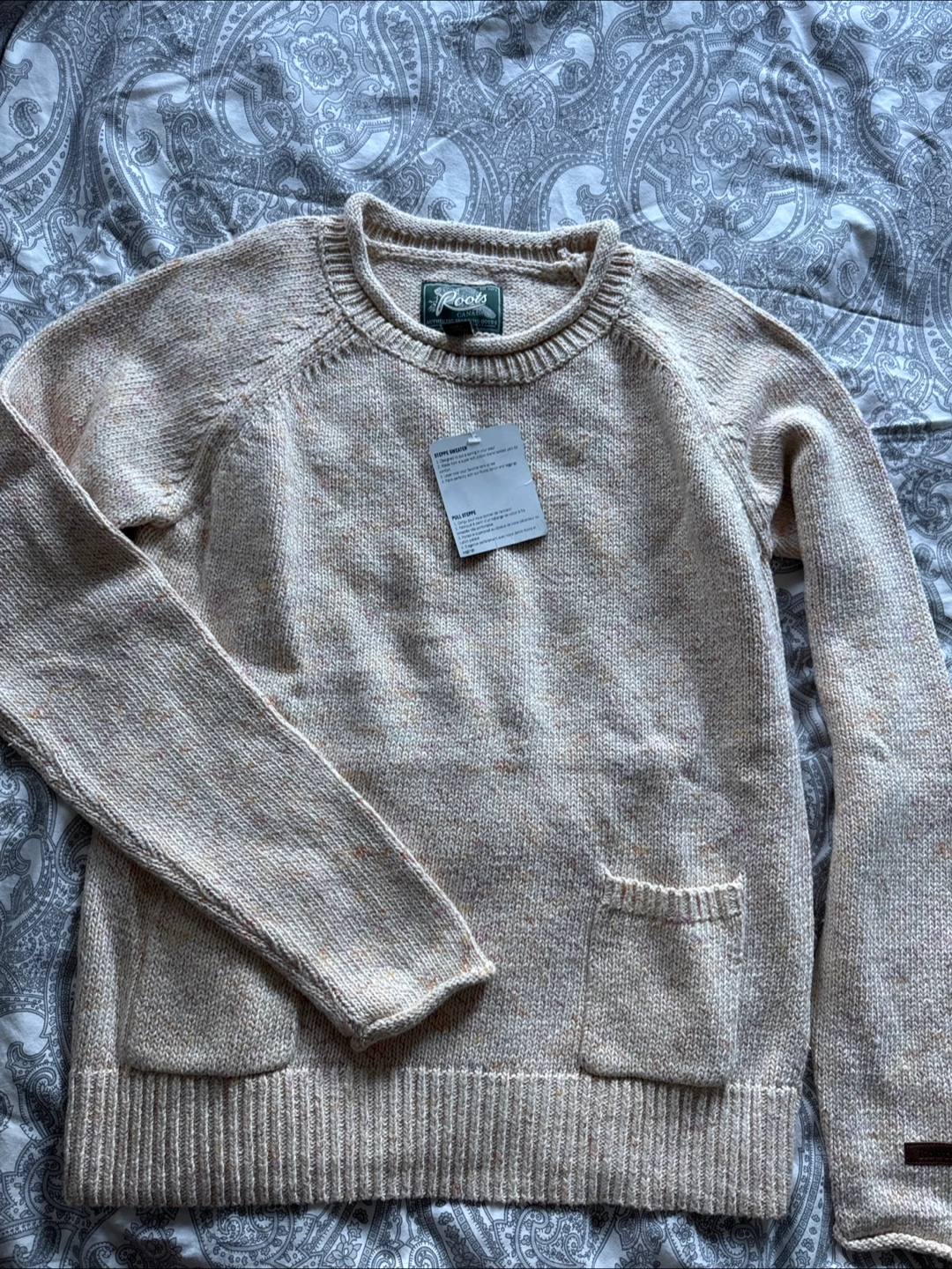 Cozy up in this Roots Steppe Sweater! It's a size small and made from a super soft cotton blend twisted yarn for extra comfort. It pairs perfectly with your favourite Roots denim and leggings. Perfect for layering over a tank or tee! Brand new never worn
